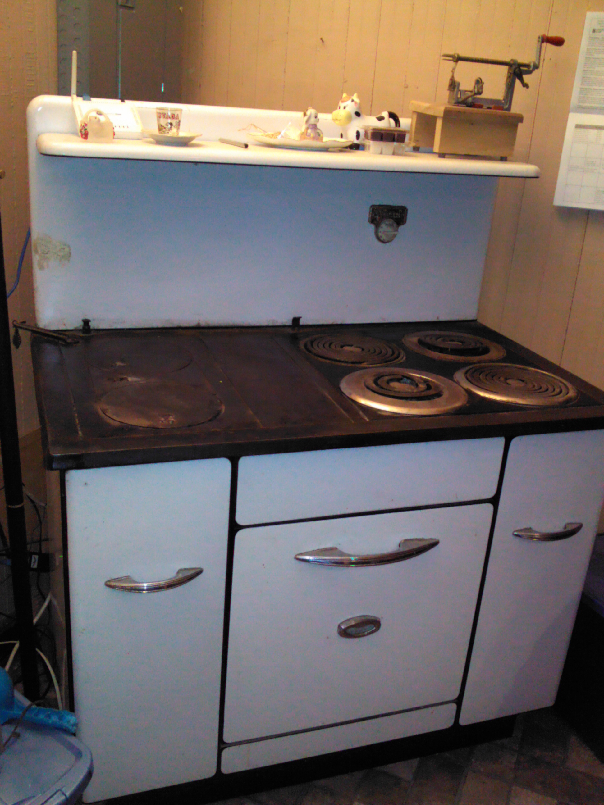 I have a Monarch Electric/Coal Stove which I believe is from 1946. it is all original including knobs and thermostat. The stove is in fabulous condition and still works. It also still has the original cast iron logos.