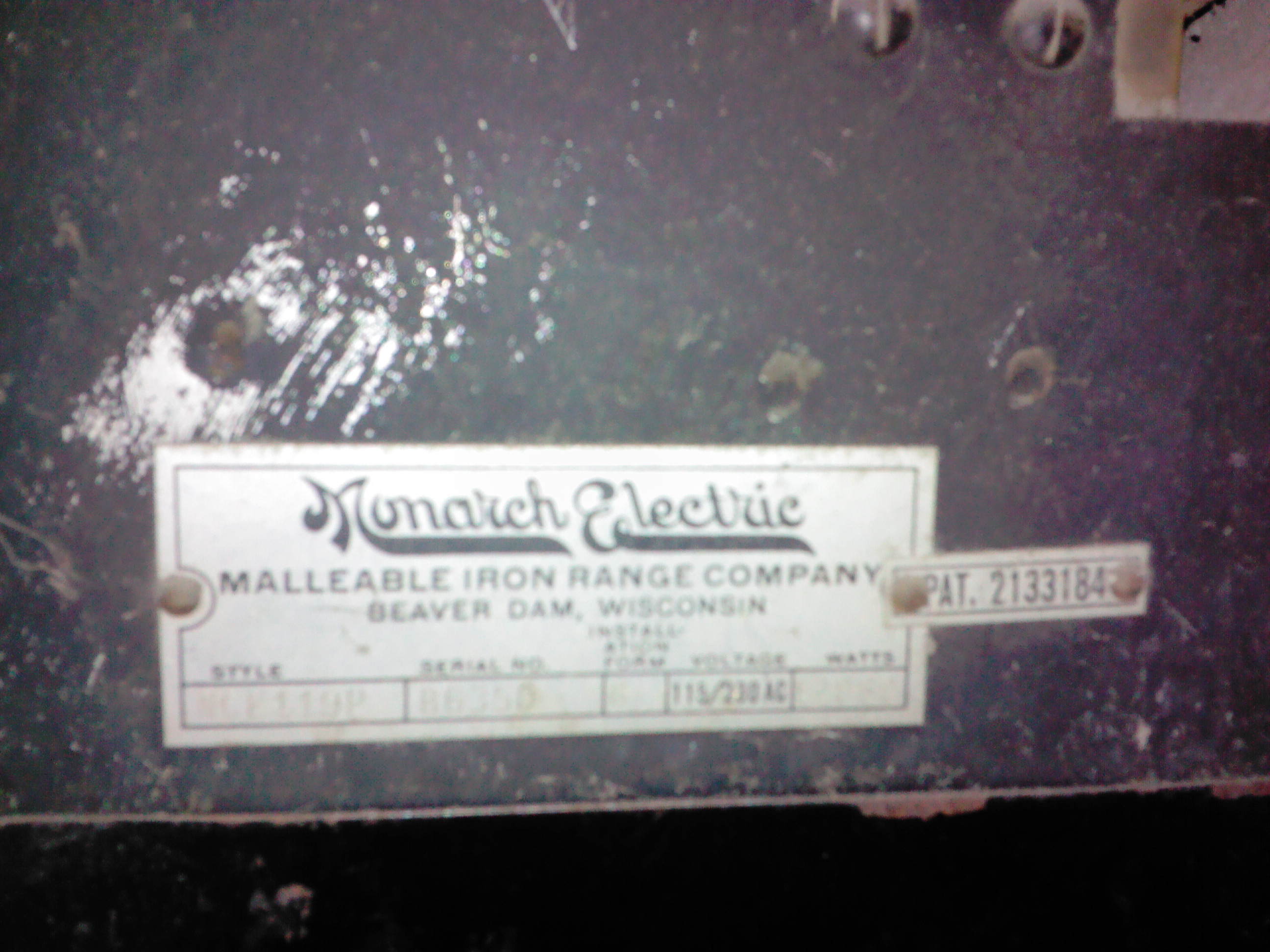 The tag on the inside left door says Monarch Electric Malleable Iron Range Company Beaver Dam, Wisconsin