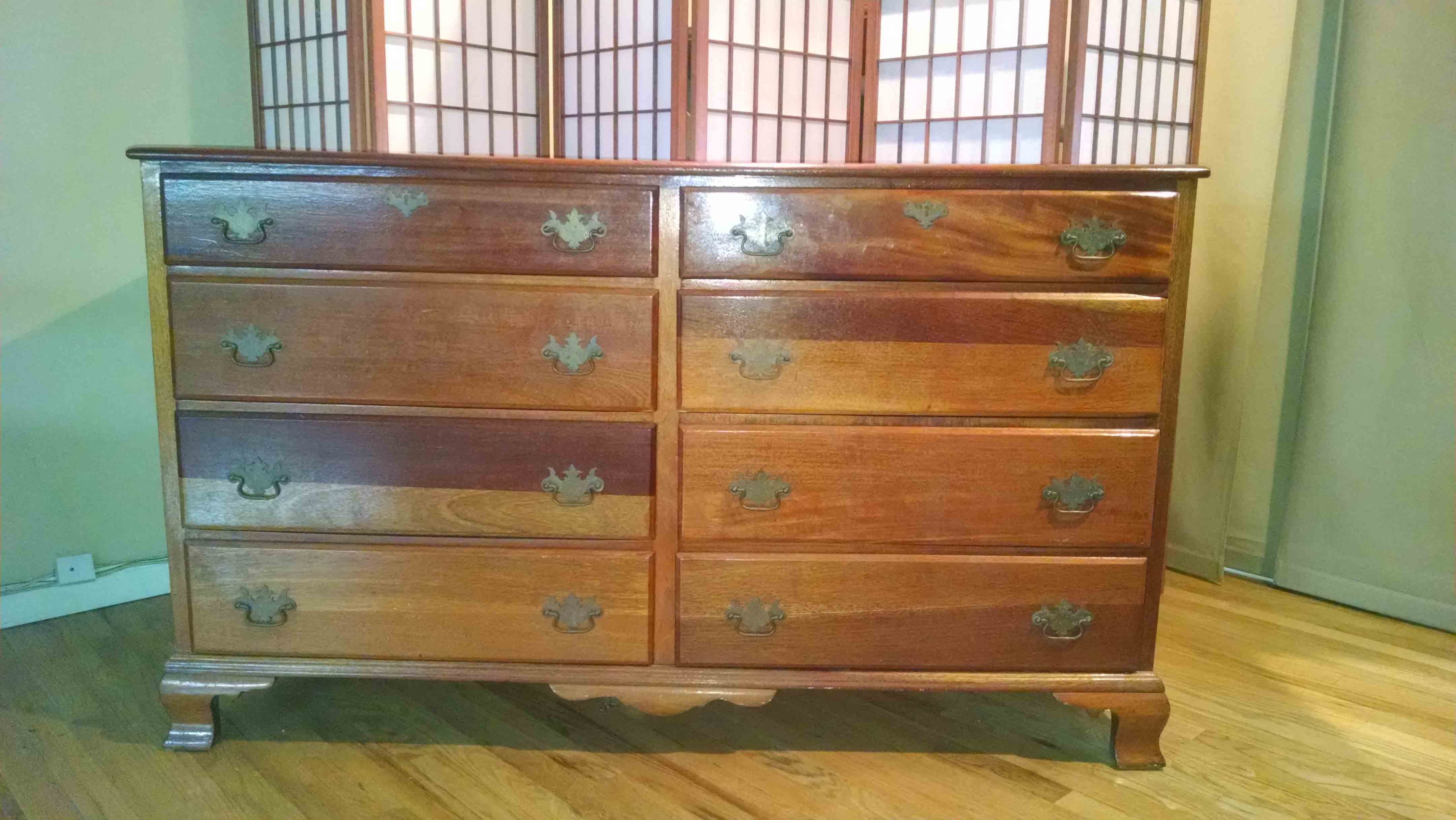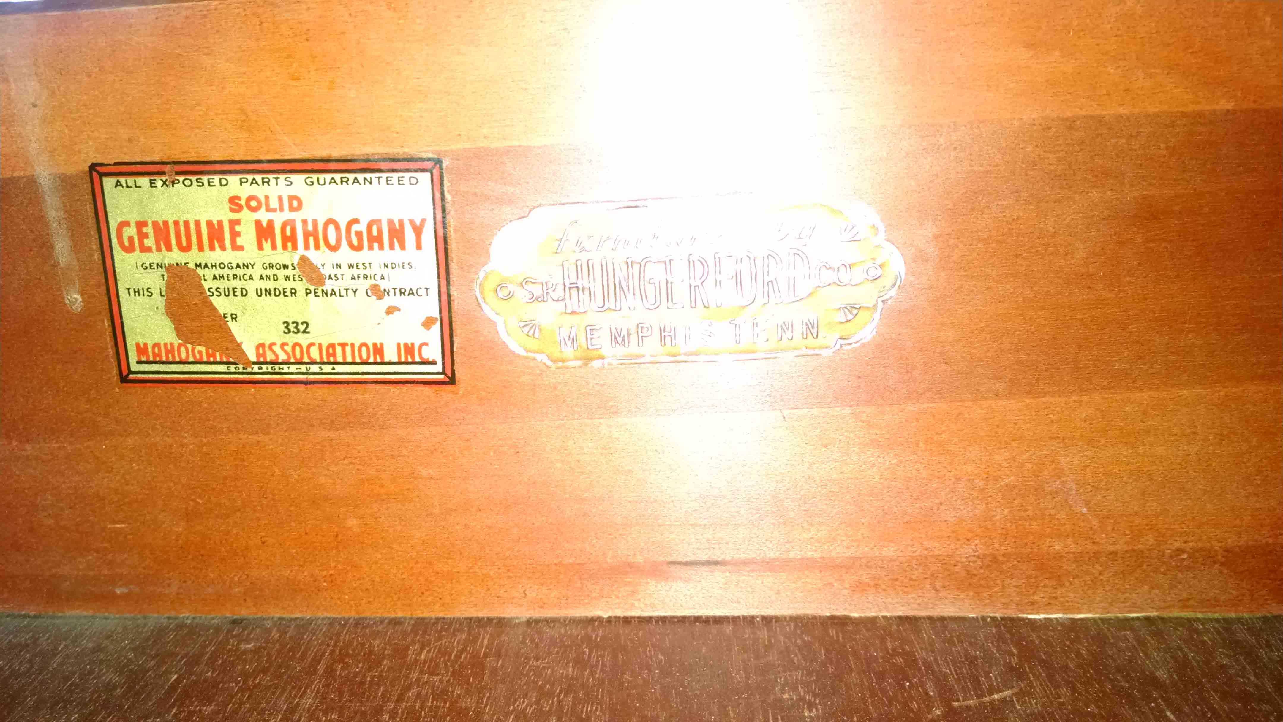 Up for sale a lovely Antique Solid Genuine Mahogany Dresser, made and authentically branded by Hungerford Furniture of Memphis, Tennessee. Overall, it is in great shape. It features eight dovetail constructed drawers with brass pulls. Structurally, it is sturdy and solid. Please expect only minimal wear - perhaps a light nick or ding here or there, but nothing significant. It has a nice, even lustered finish throughout, and the top is exceptionally clean. This beautiful dresser will complement nearly any decor. Own it now for a great price.