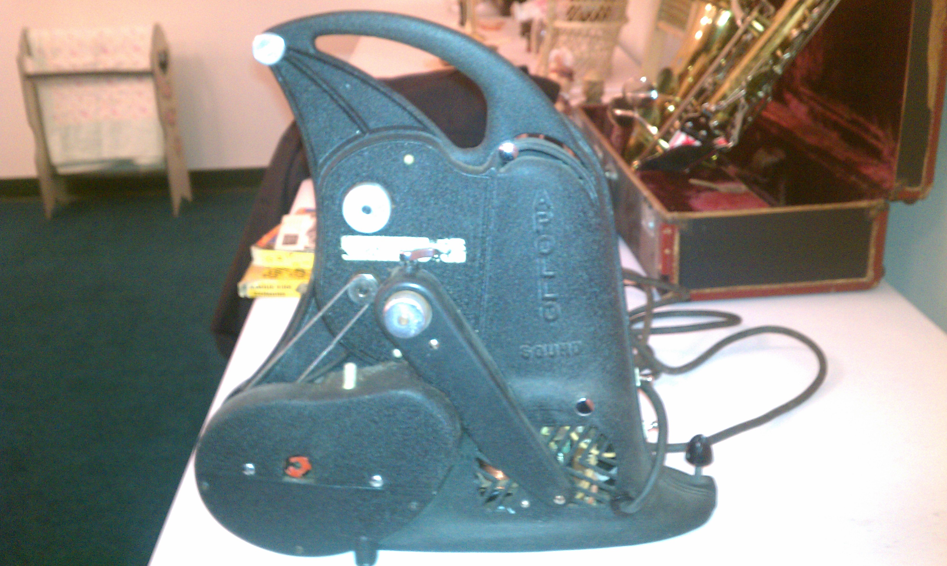 Its a 1948 Apollo film projector, with sound, black and white movies. it has the original cord. i do not have the original box, but i do have the original owners manual and power cord (which is is great shape and works properly). it comes with 2 movies, which are in the original boxes. they are shown in the first picture below