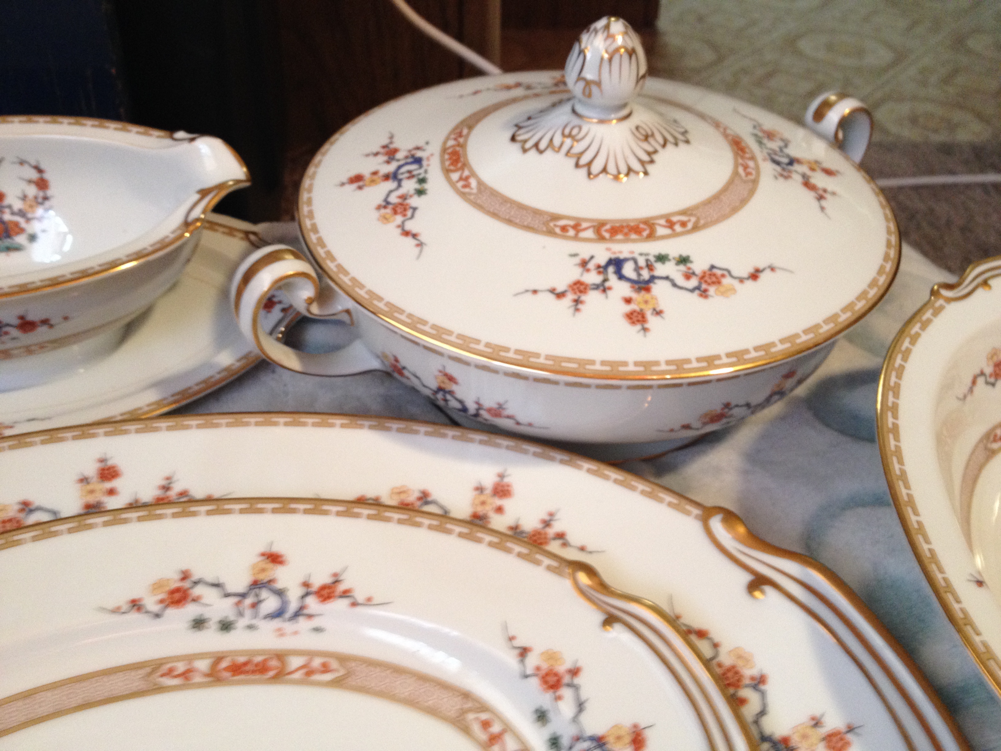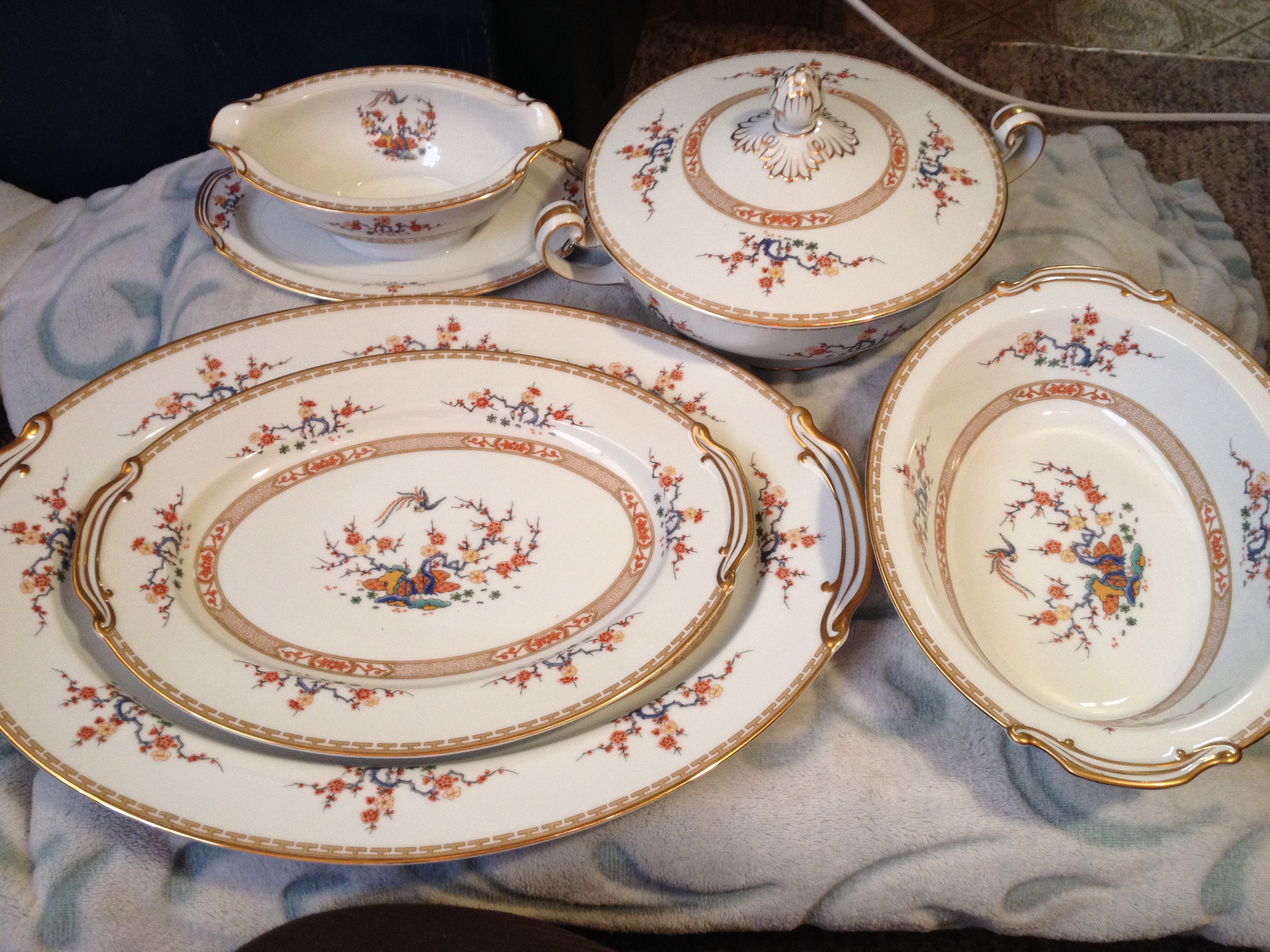 93 pieces, 7 piece place settings, sugar with lid, creamer, vegetable bowl, covered serving bowl, small and large serving platters and gravy boat. 1948 Hawthorne pattern. I know what it is just not what it is worth and how you sell it. It is beautiful, used 78 times and I need to sell it. Perfect condition, not a mark or chip on any piece.