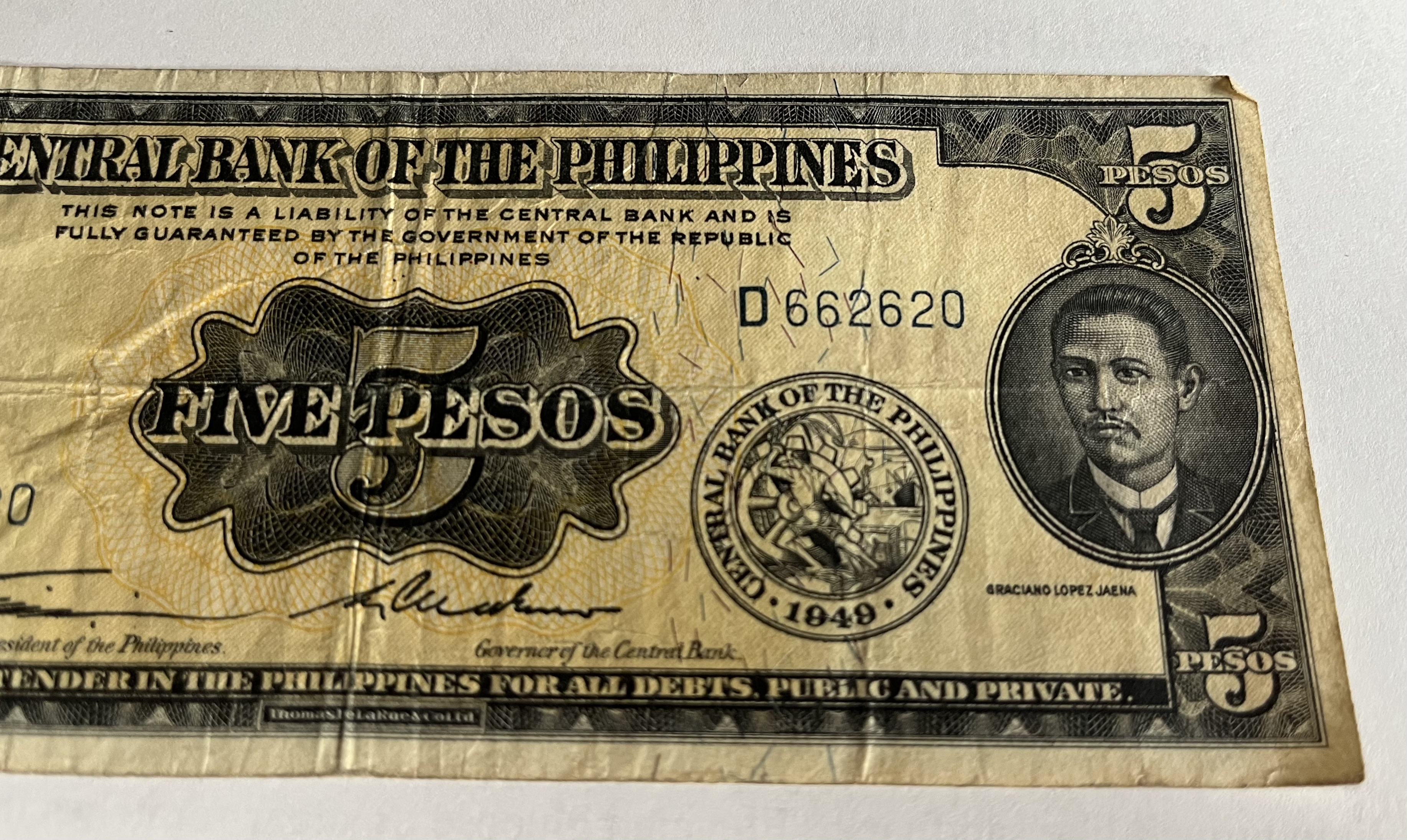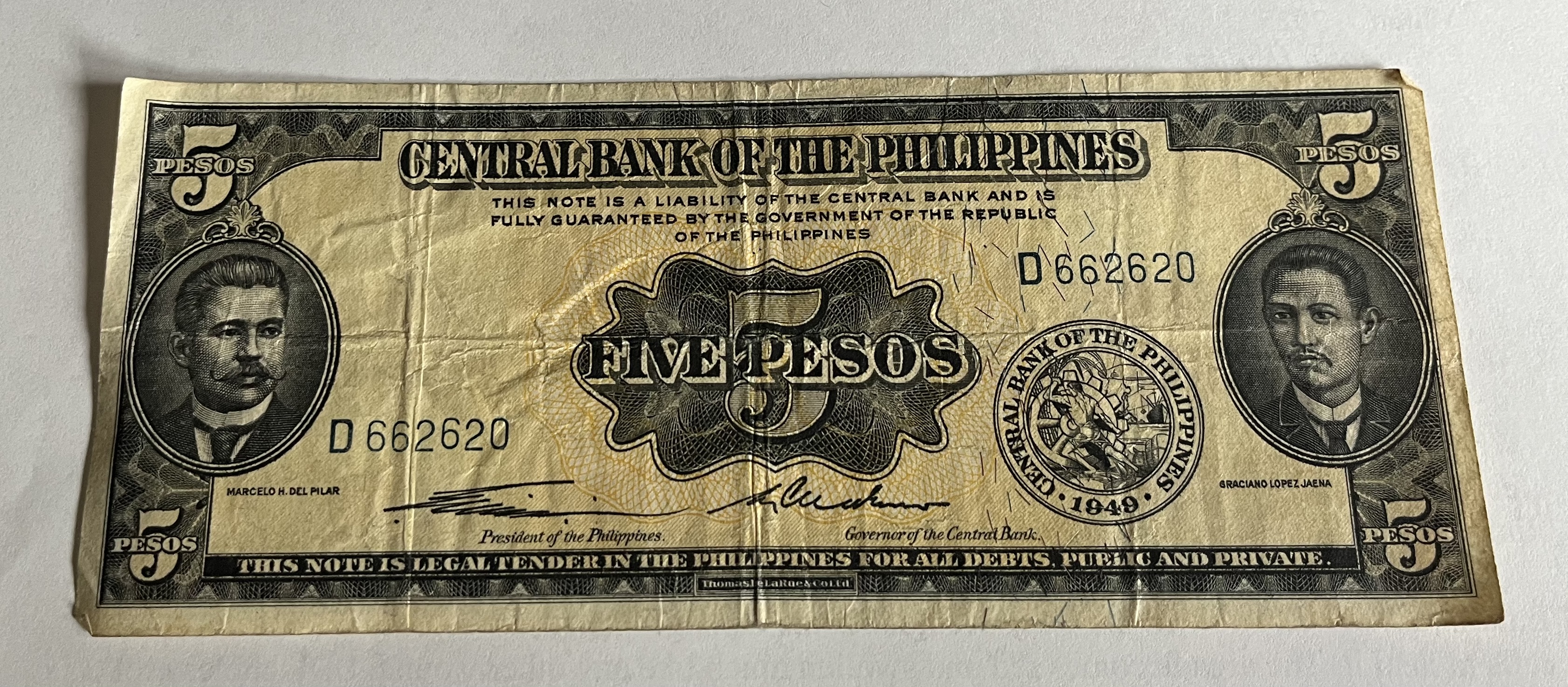 AI Appraisal: 1949 Central Bank of the Philippines 5 Pesos Bill