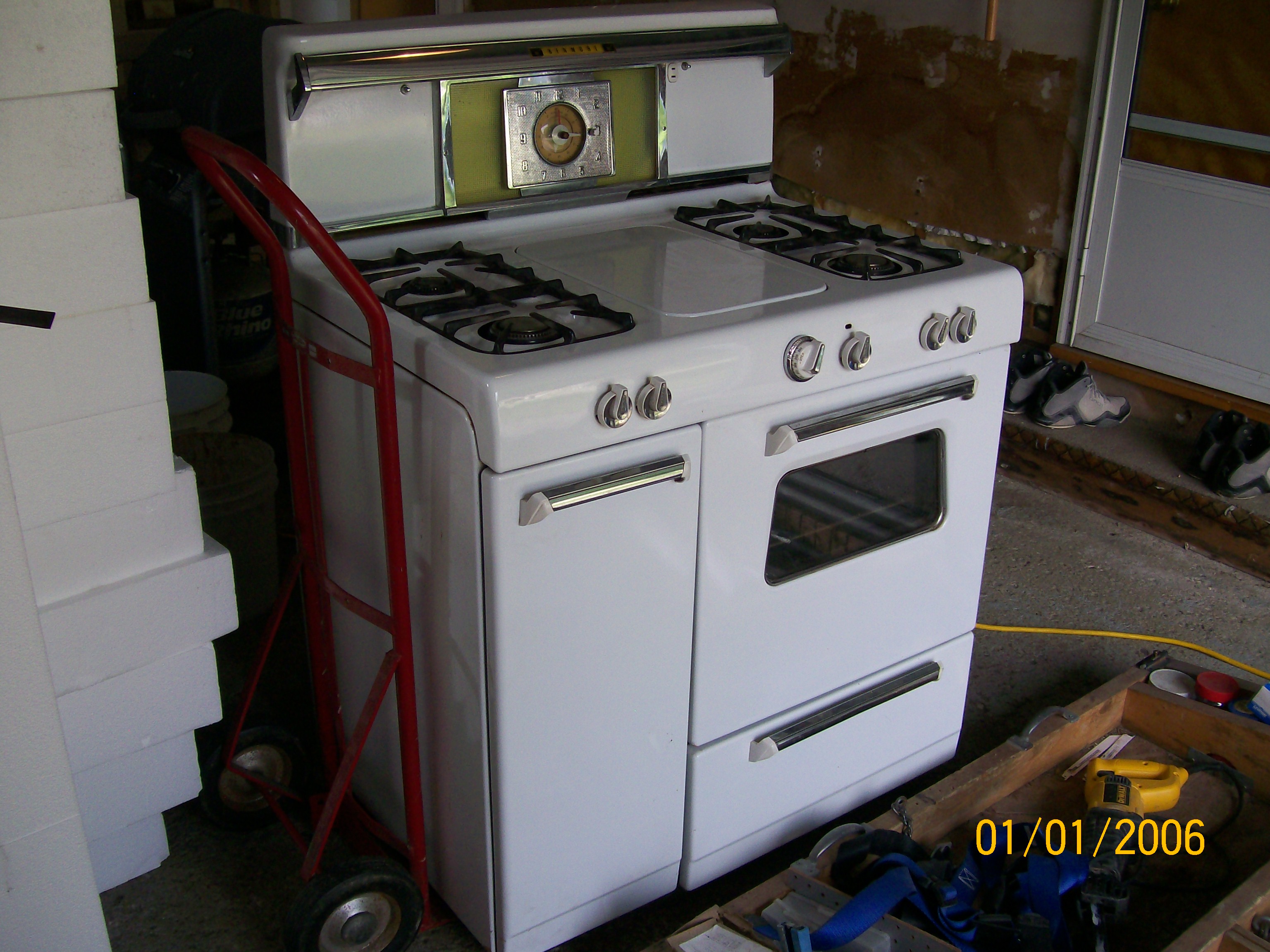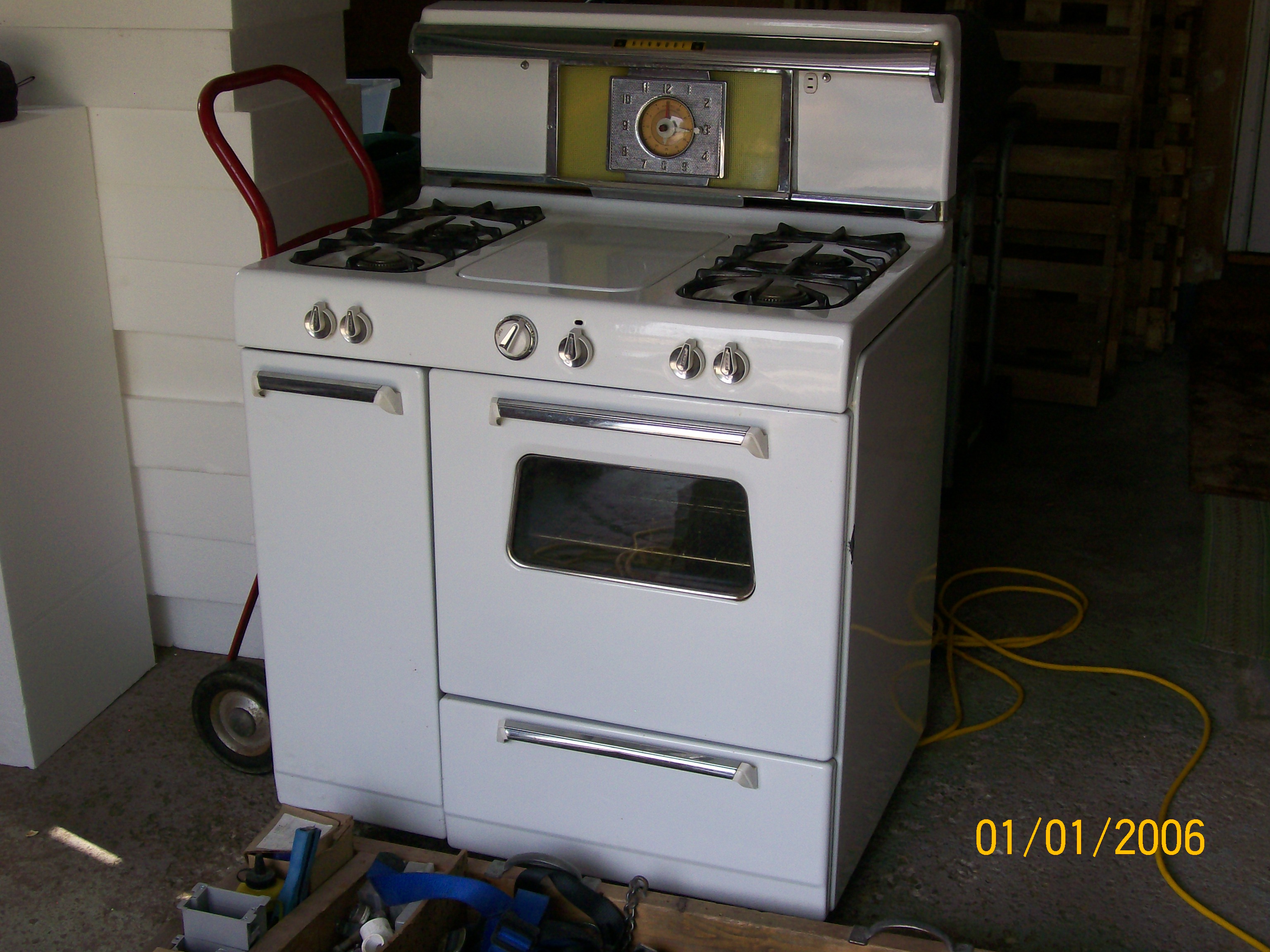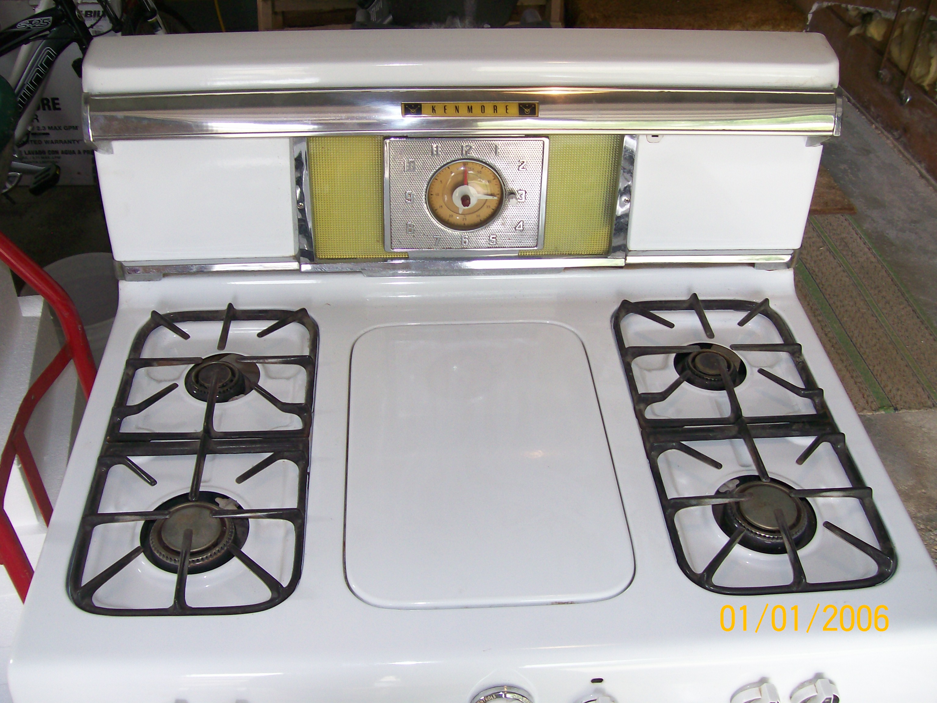 recently bought a house and there was a summer kitchen in the basement. the stove was in working order but i did cut the power cord off the back because it was frayed so that will have to be replace. has a small ding on right side where the enamal has been chipped off but other than that i believe it is in great shape. four burners with center hot plate...it is a kenmore stove.