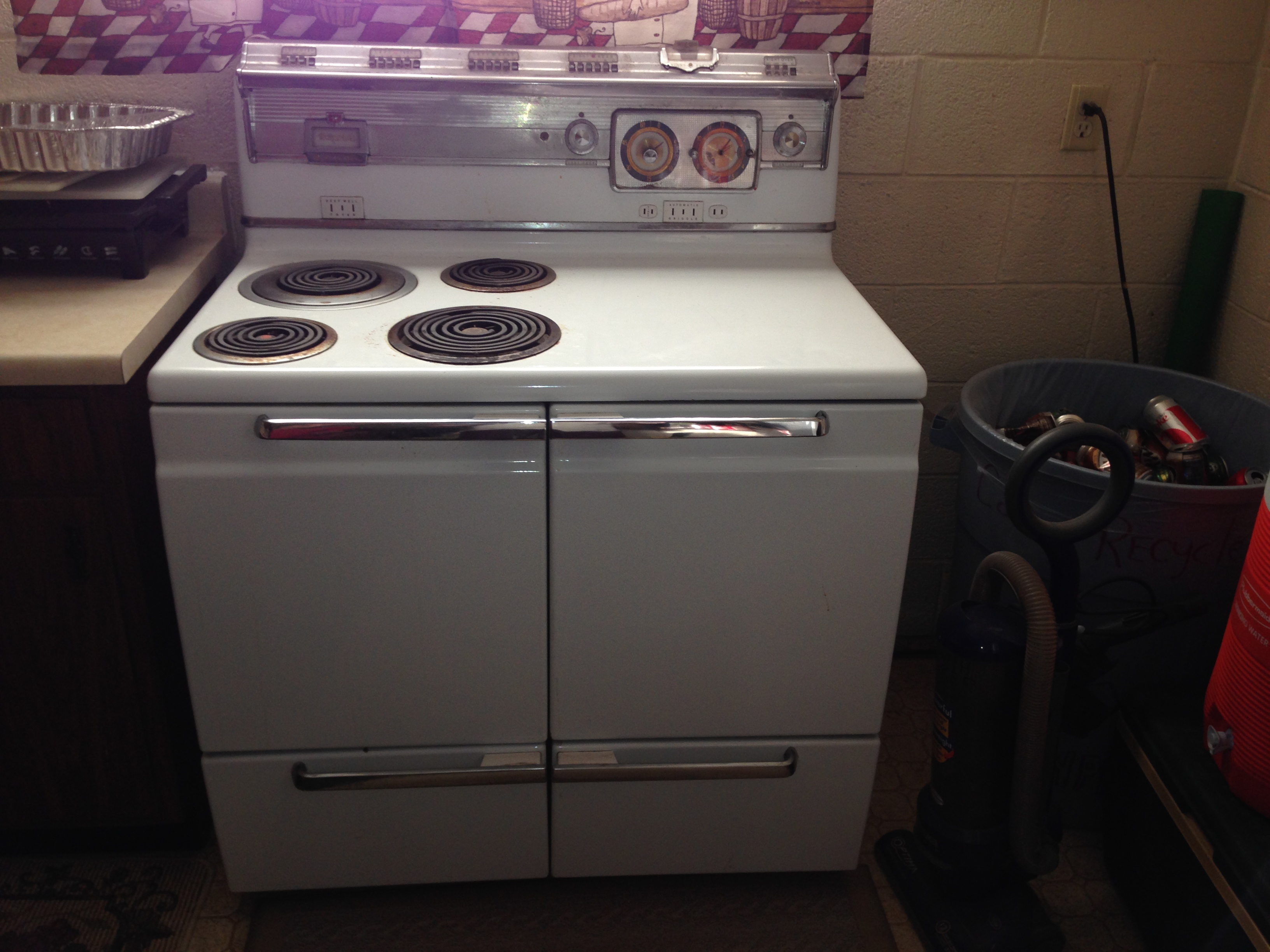 This is a actual working stove in our HAM Radio Club that was built in 1950s. We believe it to be original and only one installation from original purchase. Our club is trying to upgrade the stove to a modern gas stove, but we are trying to figure out the value and see if it will fund the purchase of a new stove.