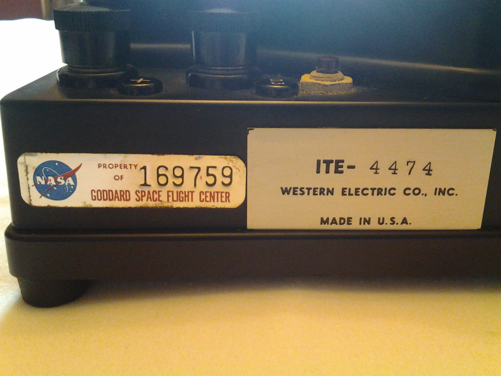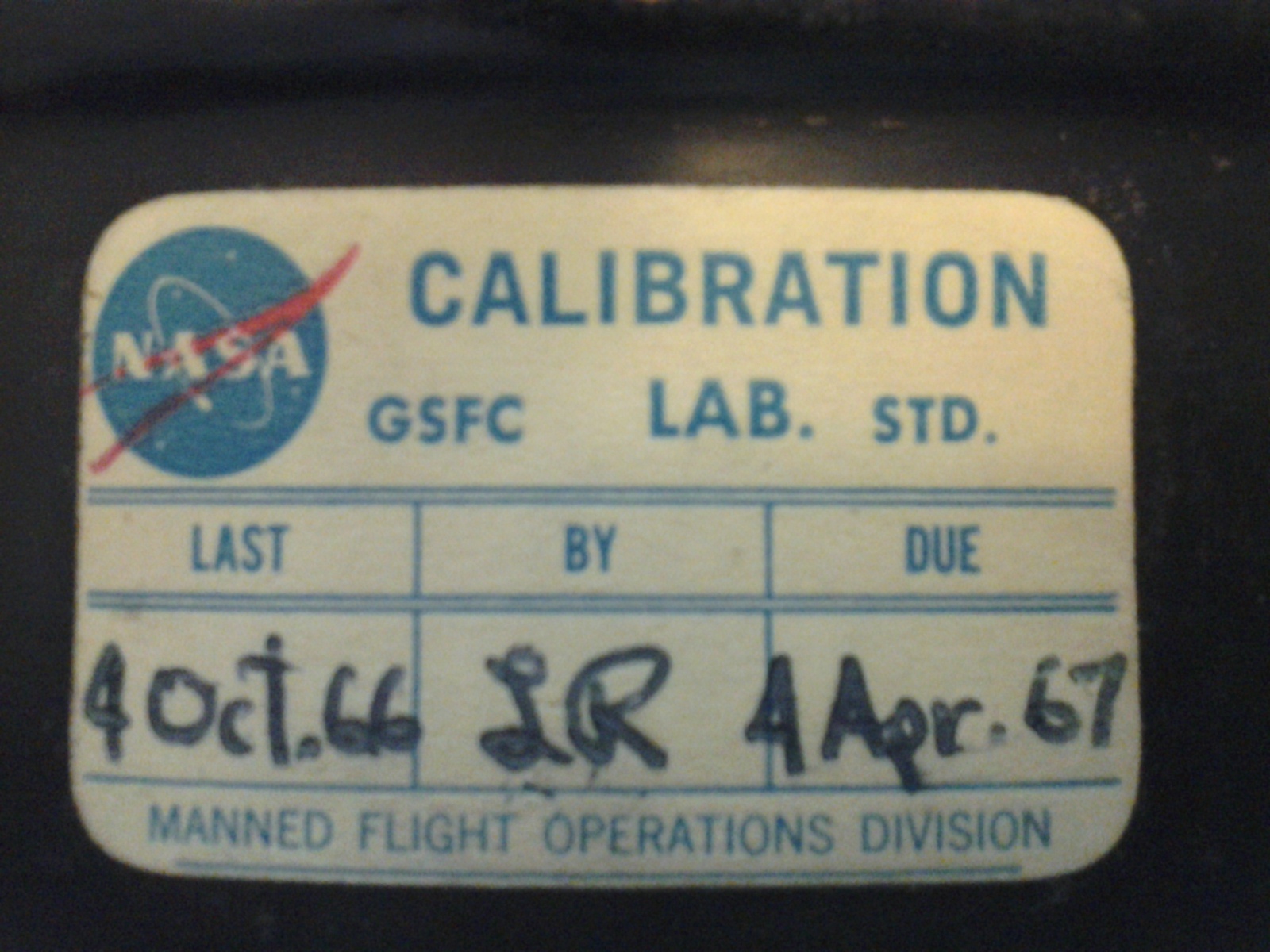 NASA Calibration Sticker with date of October 4, 1966 and Due date of April 4, 1967