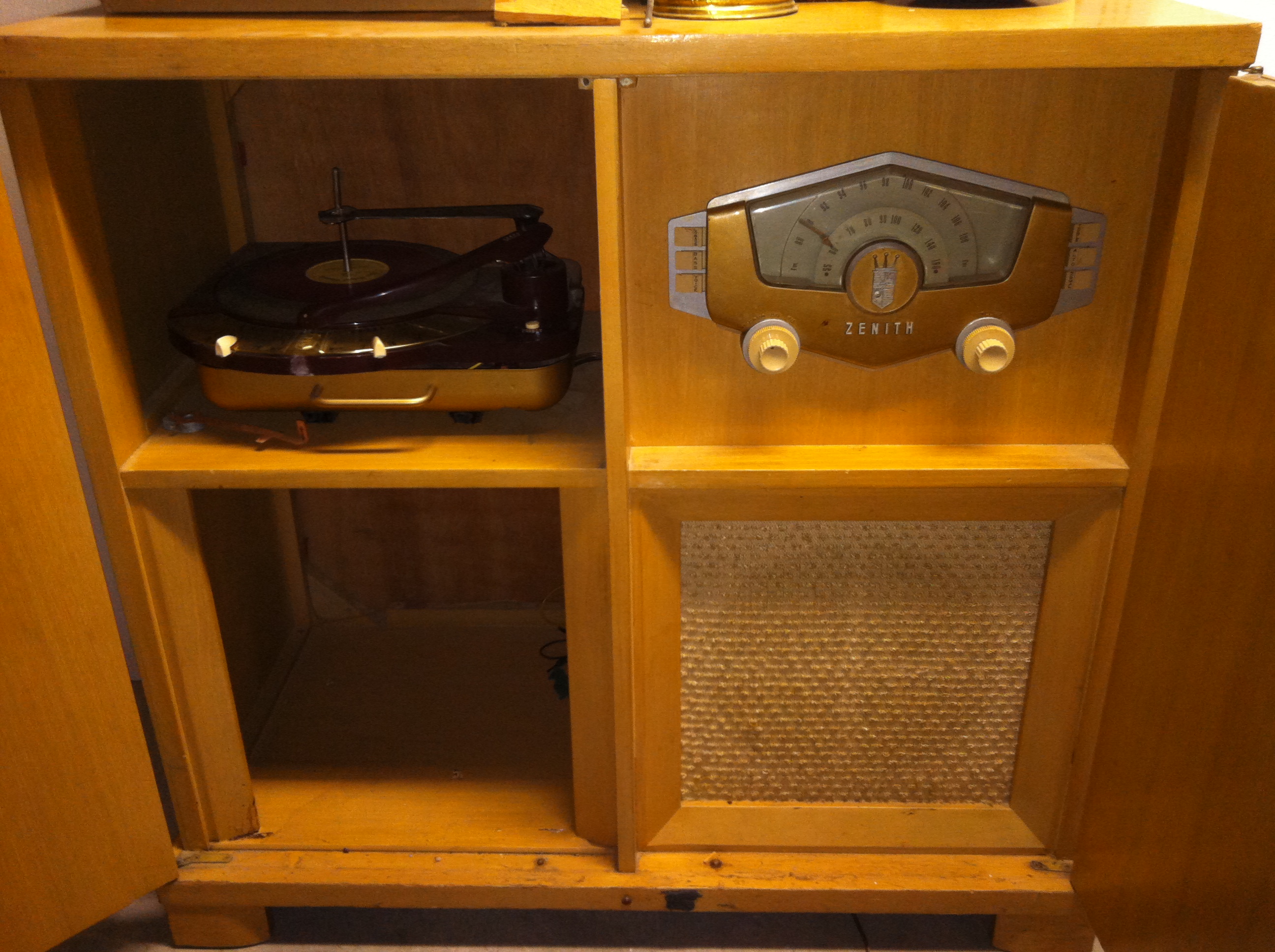 vintage Zenith radio phonograph (cobra-matic) combination cabinet mid-1900s rare blond cabinet in working condition