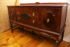 I am selling a 1953 Precedent by Drexel Dining Room Suite designed by Edward Wormley. I am believed to be the second owner of this Dining Set. The set includes the Credenza, Gatefold leg drop leaf table that seats 6 and includes 3 extra leaves ( have never seen another Precedent table like it that has gatefold legs) and lighted China Cabinet. The set is still in its original state. It has very minimal wear, which is on the table top surface. I also have the custom fit vinyl padded table top cover. The Credenza still has the original lining in the top two drawers for silver and also have the original matching polishing cloth. The China Cabinet and Credenza have brass handles and accents. The furniture is stucturally sound with no cracks, no water damage or discoloring. This was made back when furniture was constructed of real hard woods, not the chipboard stull like is found now. I hate to part with the set but its just too much furniture for for a single person. I have been told by a few people that the wood type is Bleached Mahogany. If you have any questions please dont hesitate to email me or text me (765)354-8137. I am asking $1200.00 for the set or best reasonable offer. However I do know what this set is worth and will not be low balled. I am not looking to trade only to sell. I also going to include my very extensive collection of 1951 Libby Golden Foliage Stemware and Drinking Glasses with the Dining Room Suite. The glassware alone is worth close to $1000.00 and is all in excellent shape. Thanks so much for you looking.