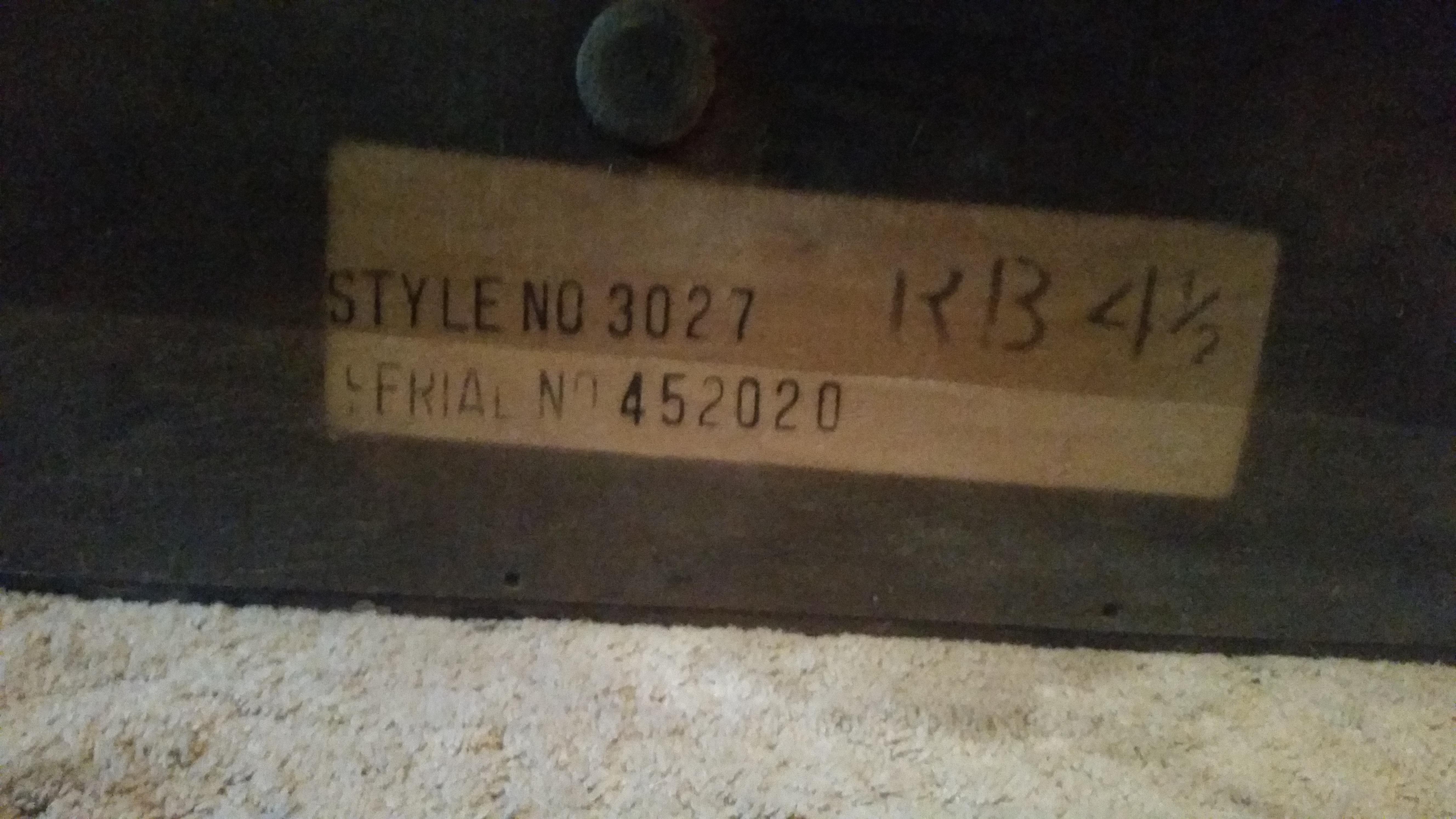 Style number 3027. Outide has some minor stains & one leg is broken, but inside is in excellent condition.