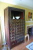 Medicine cabinet Hidden plug on the bottom of the right side light curve top glass. Two glass interior shelfs. Two side fluorescent lights. Aluminum frame.