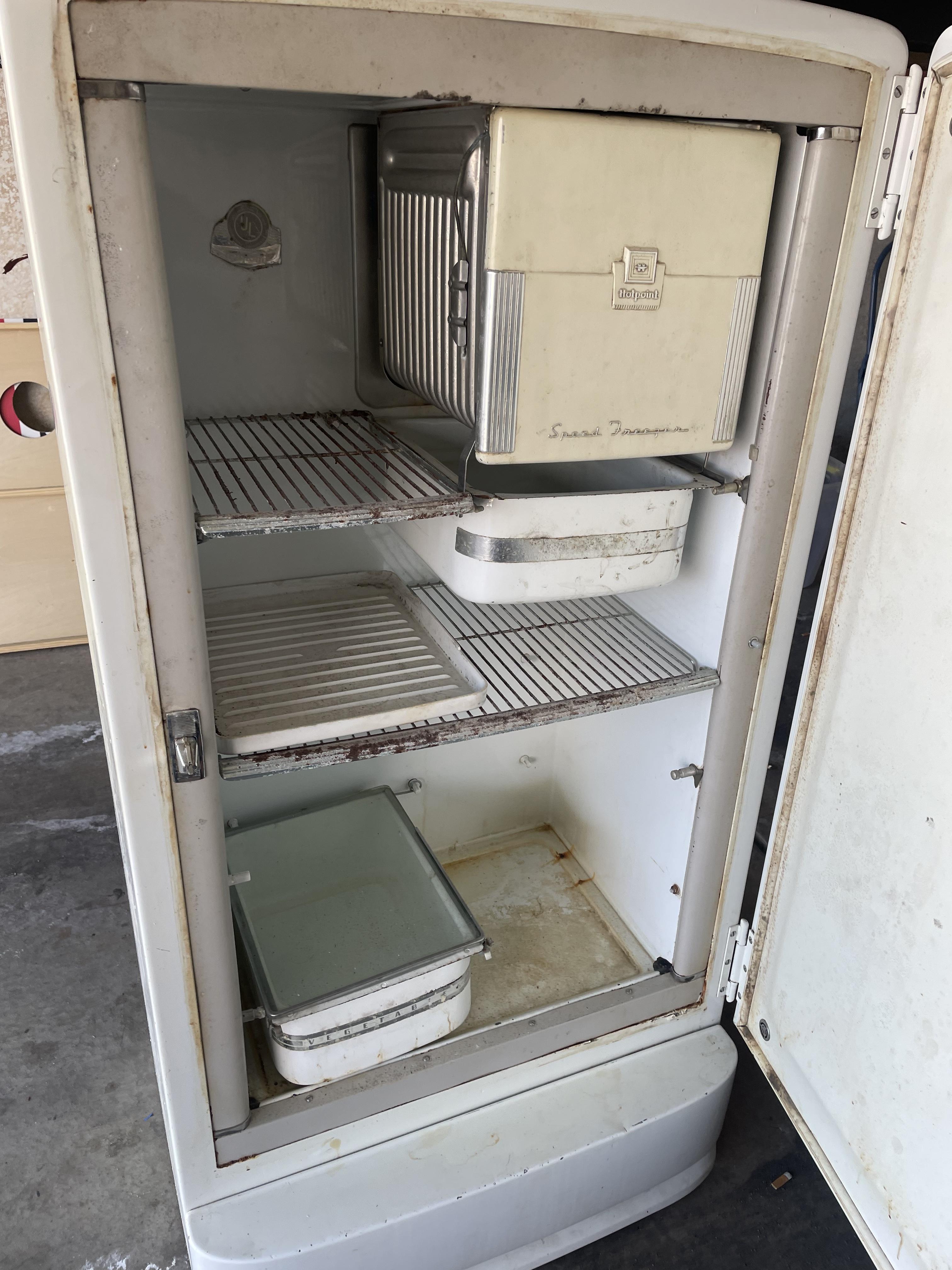 Description Working 1956 Frigidaire in satin white The inside is before being cleaned