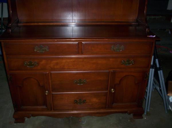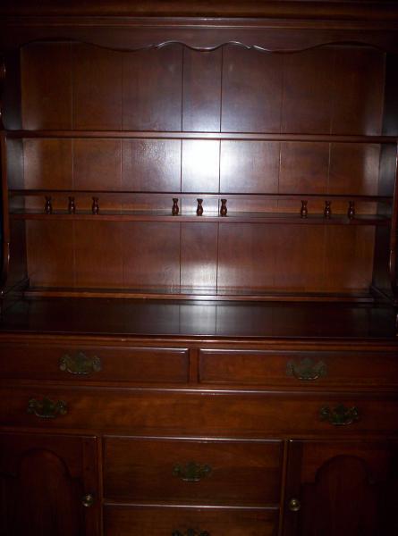 two piece cherry hutch in good condition, no visible scratches, has a stamp on the back dating this piece from 1959