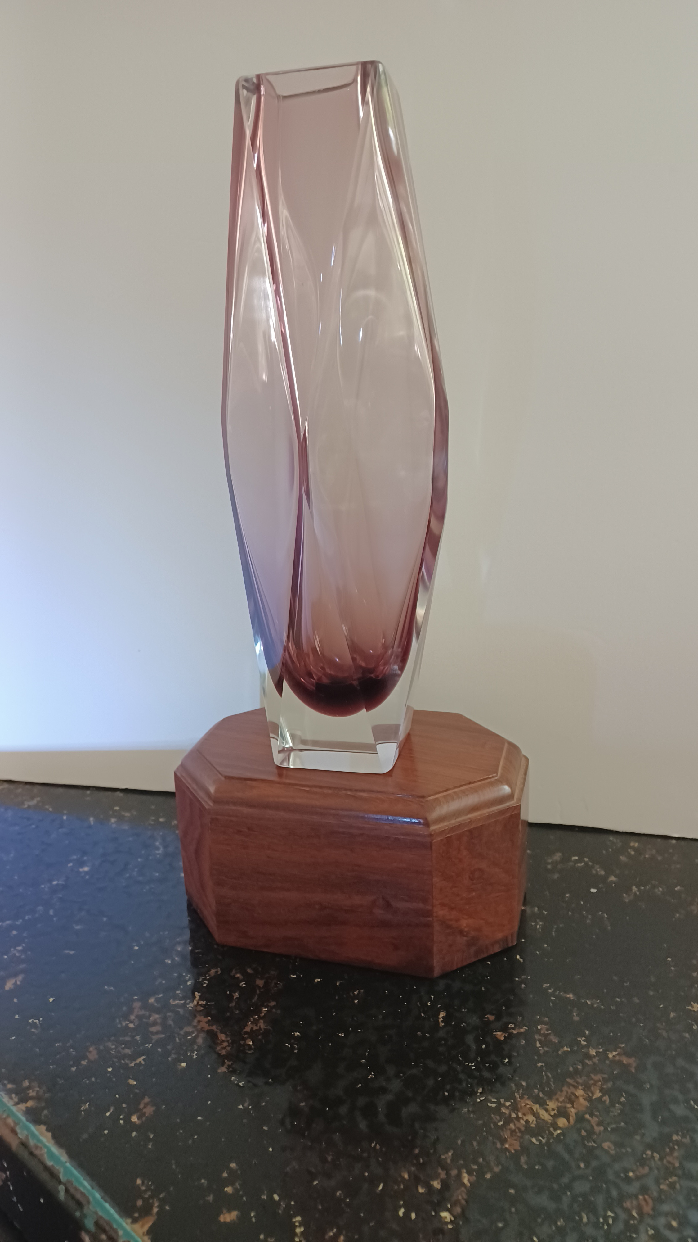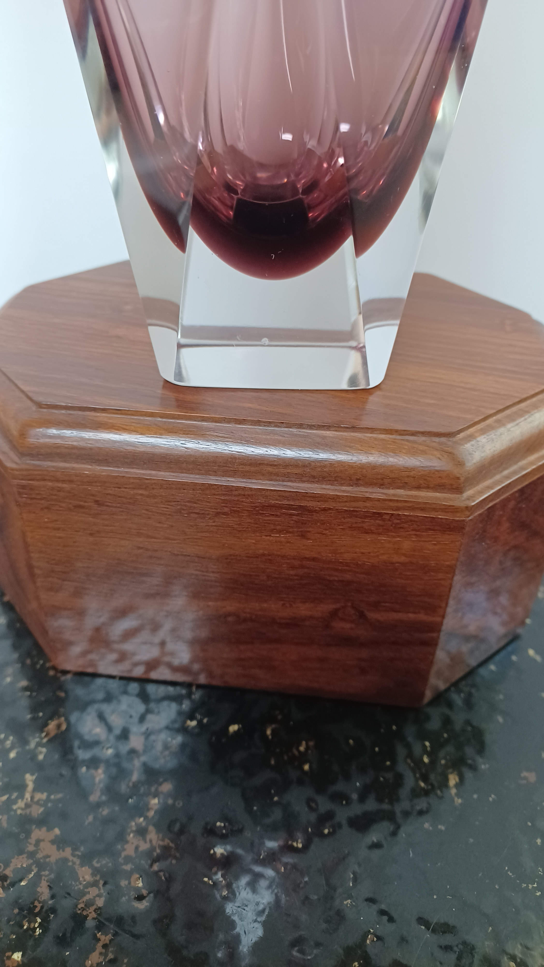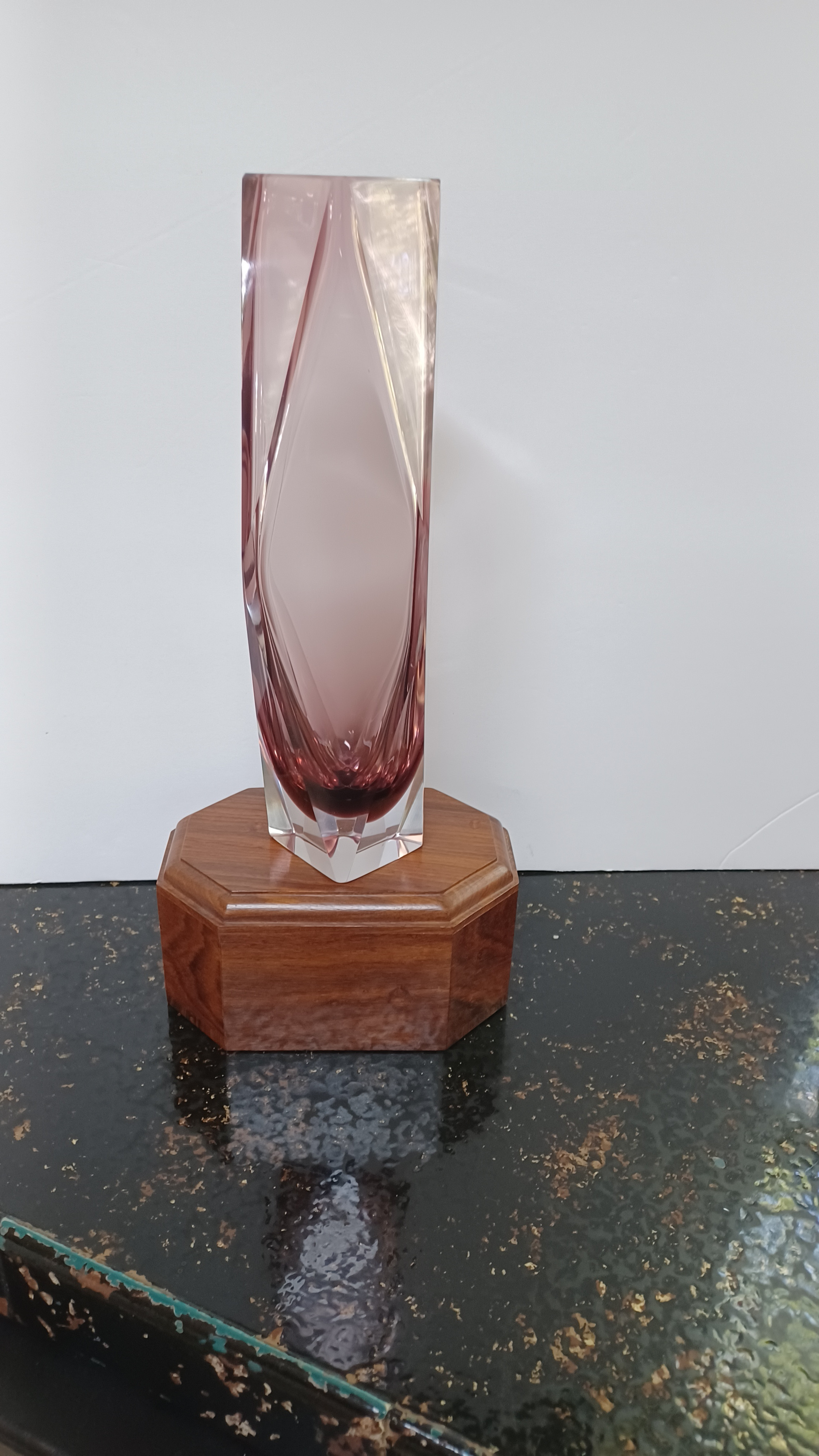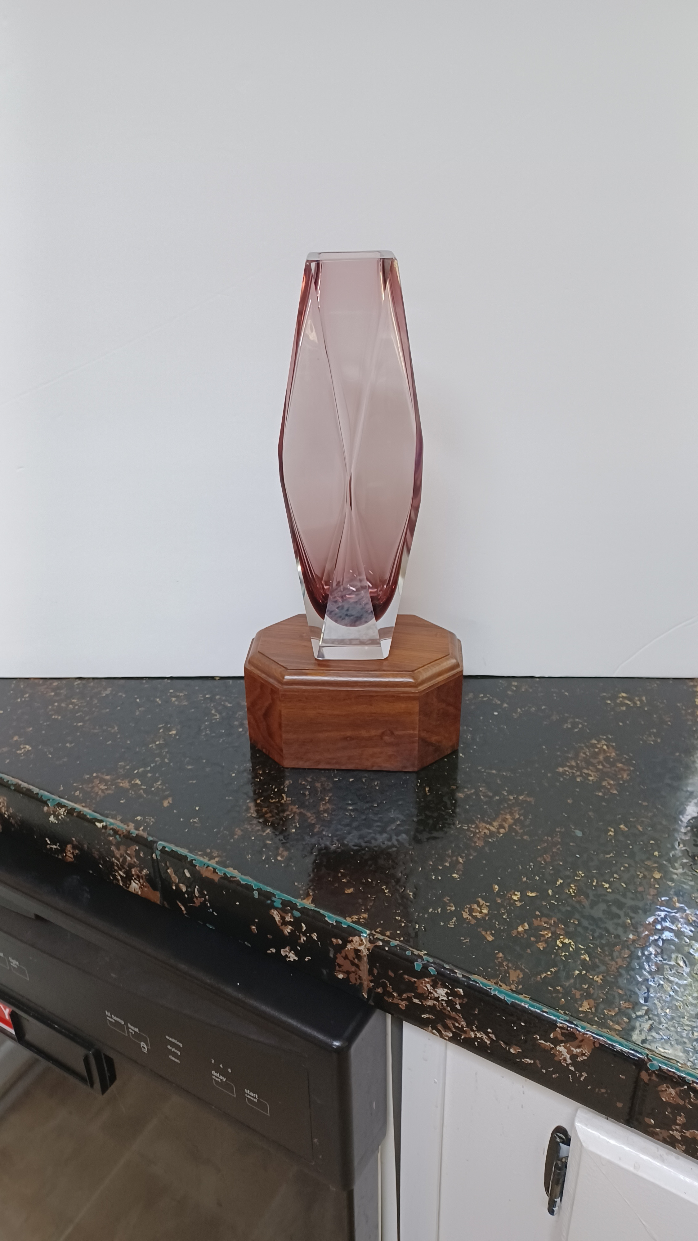 A faceted handblown Murano-style art glass vase, dating from the 1960s, featuring: