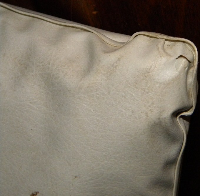 The cushion has some wear through which is shown magnified in the pictures.