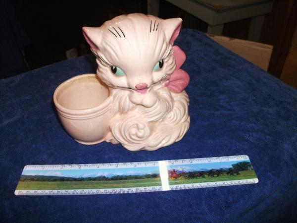 This is approximately seven inches long, by seven inches tall, by four inches wide. It is light pink body, with dark pink accents.