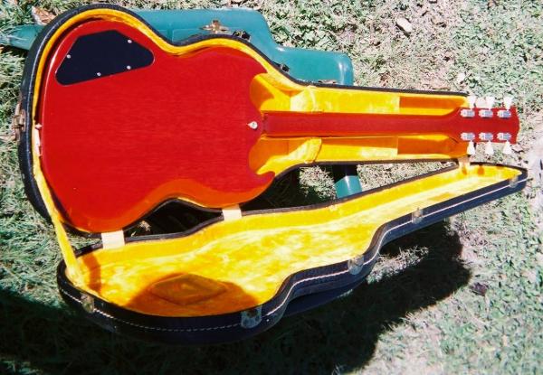 In an alligator case bought in 1962 at Finer's Music Co., 2024 Broad Street, Bangor Maine.