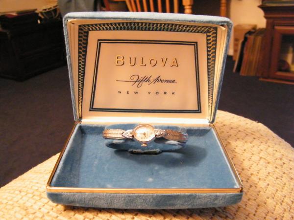 on face: "Bulova" & "23"; on back: "Bulova, 14K gold, M2" & "W03664"