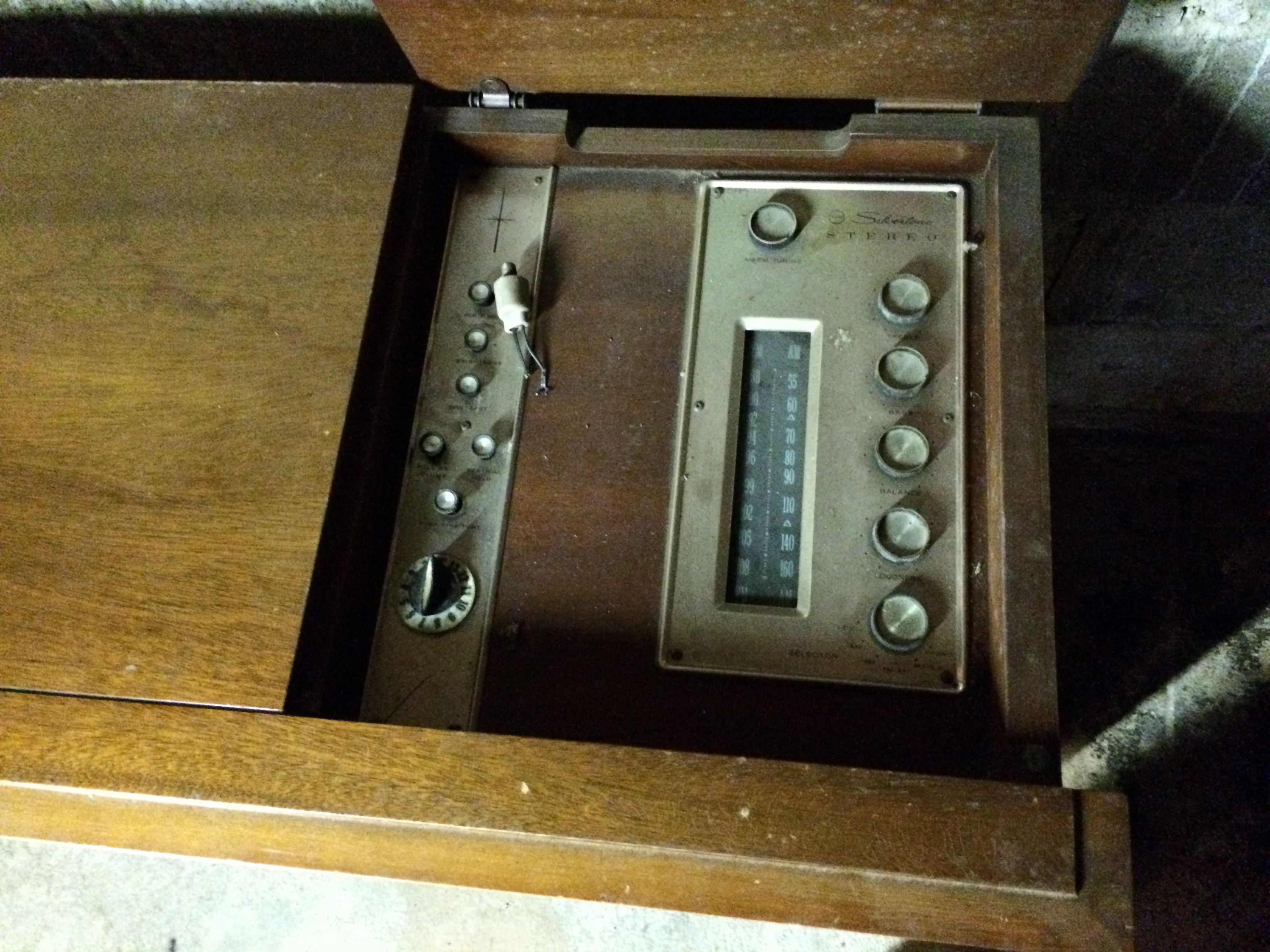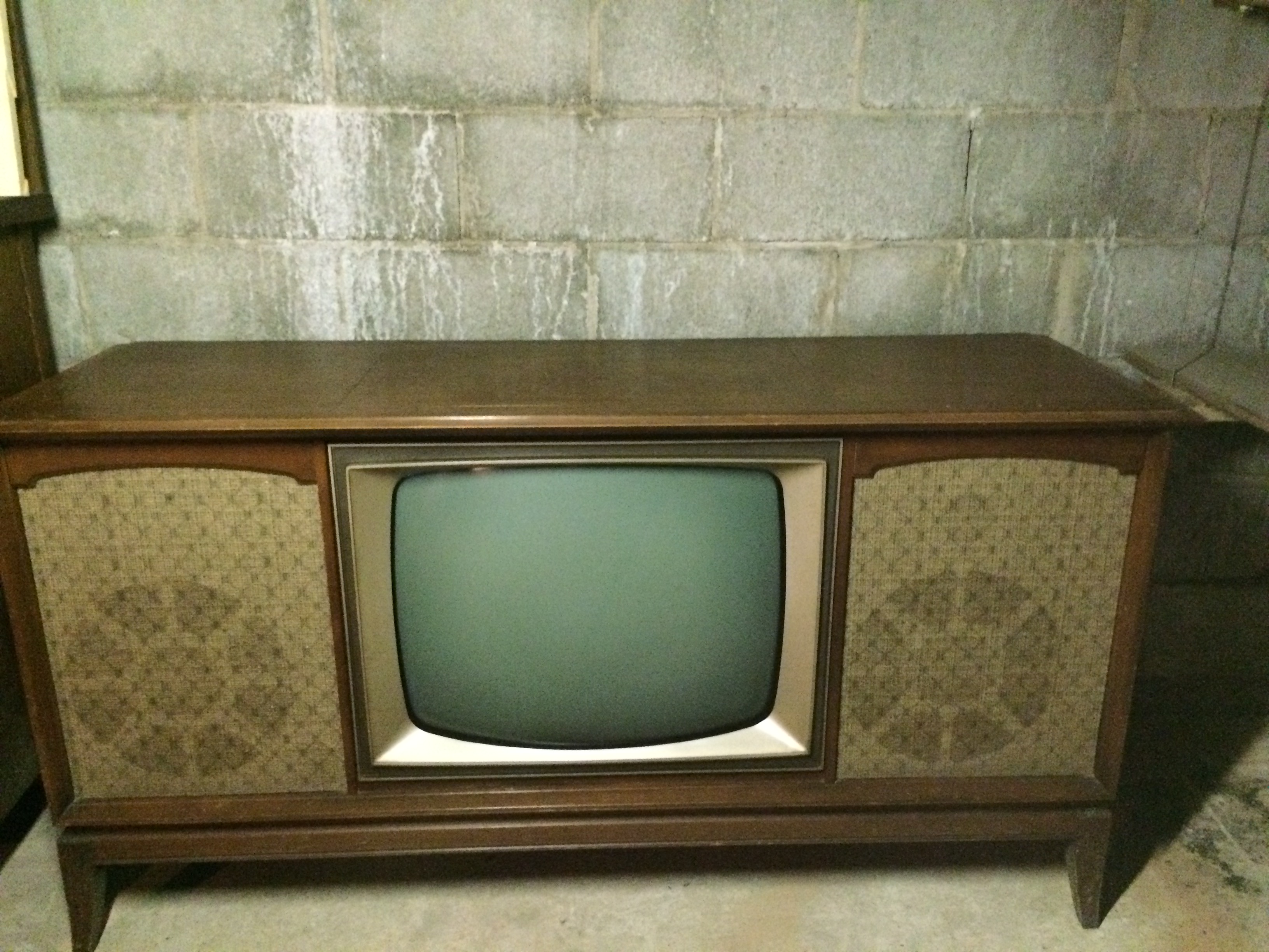 A 1962 television set with a built in radio and record player. One owner. It was in my Grandmother's living room for 50 years until we moved it to the basement. The radio part says Sears Silvertone, no idea if that's just the radio manufactor or the whole unit. But my grandparents did love buying things from Sears. Stands about 2 1/2 feet tall and almost 5 feet long. It's somewhere around a 22 or 23 inch TV.
