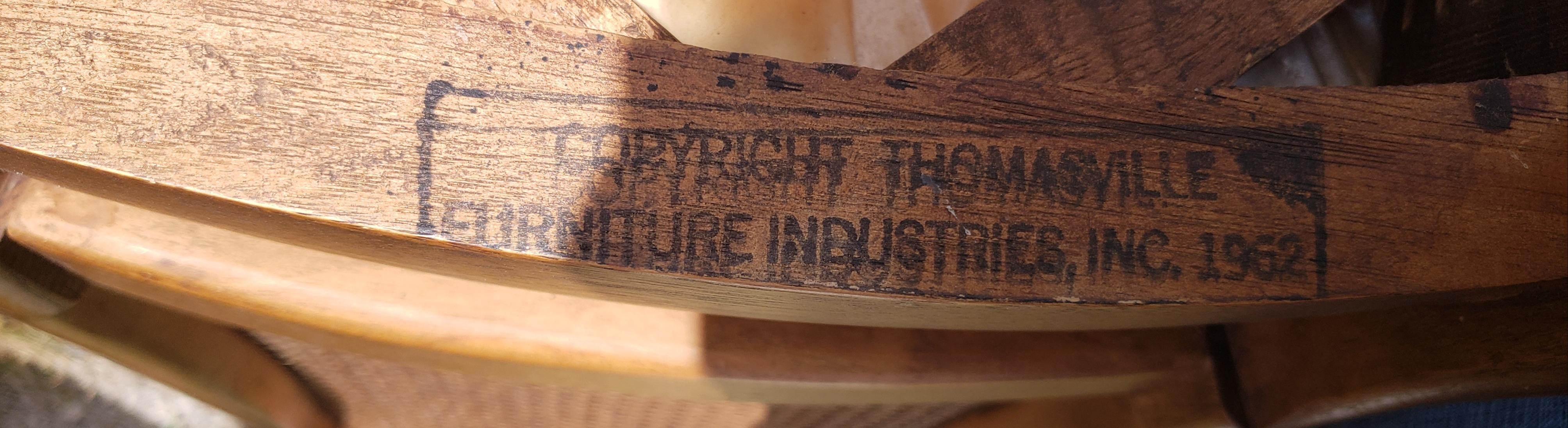 I was given this table and chairs out of an old house and was just wondering if anyone had a value you for it. The chairs fabric are covered is plastic. The stamps on the table and chairs say Thomasville 1962. Anyone have any ideas of its value?