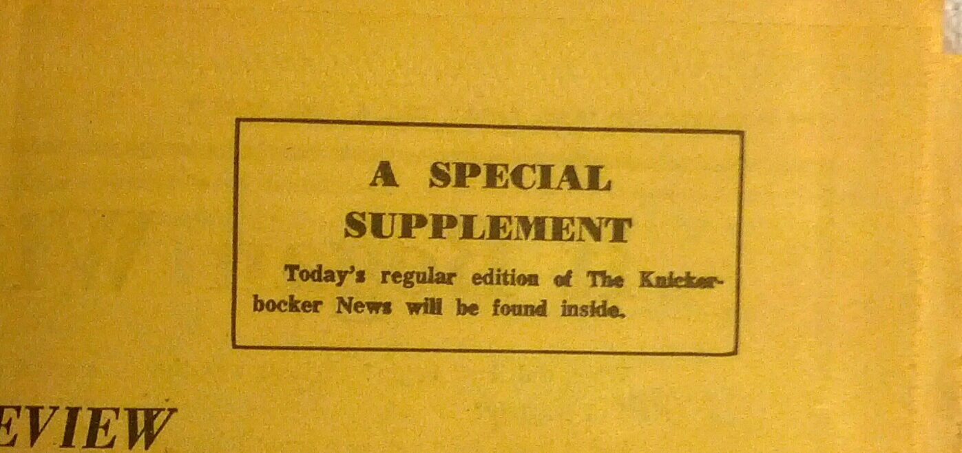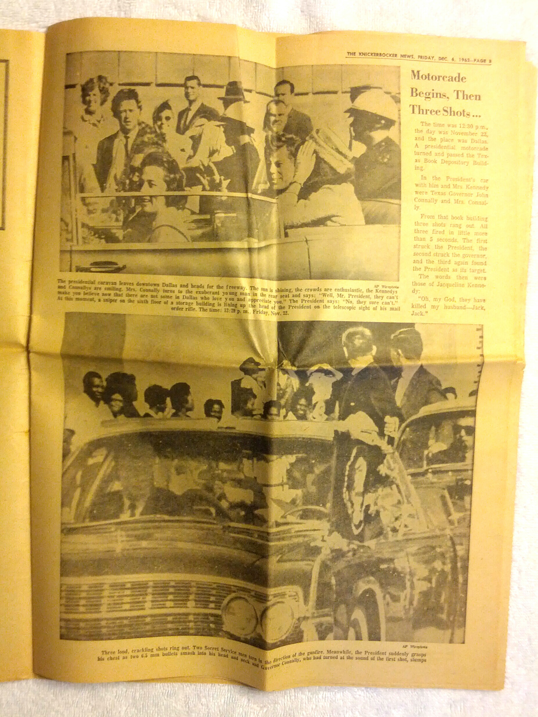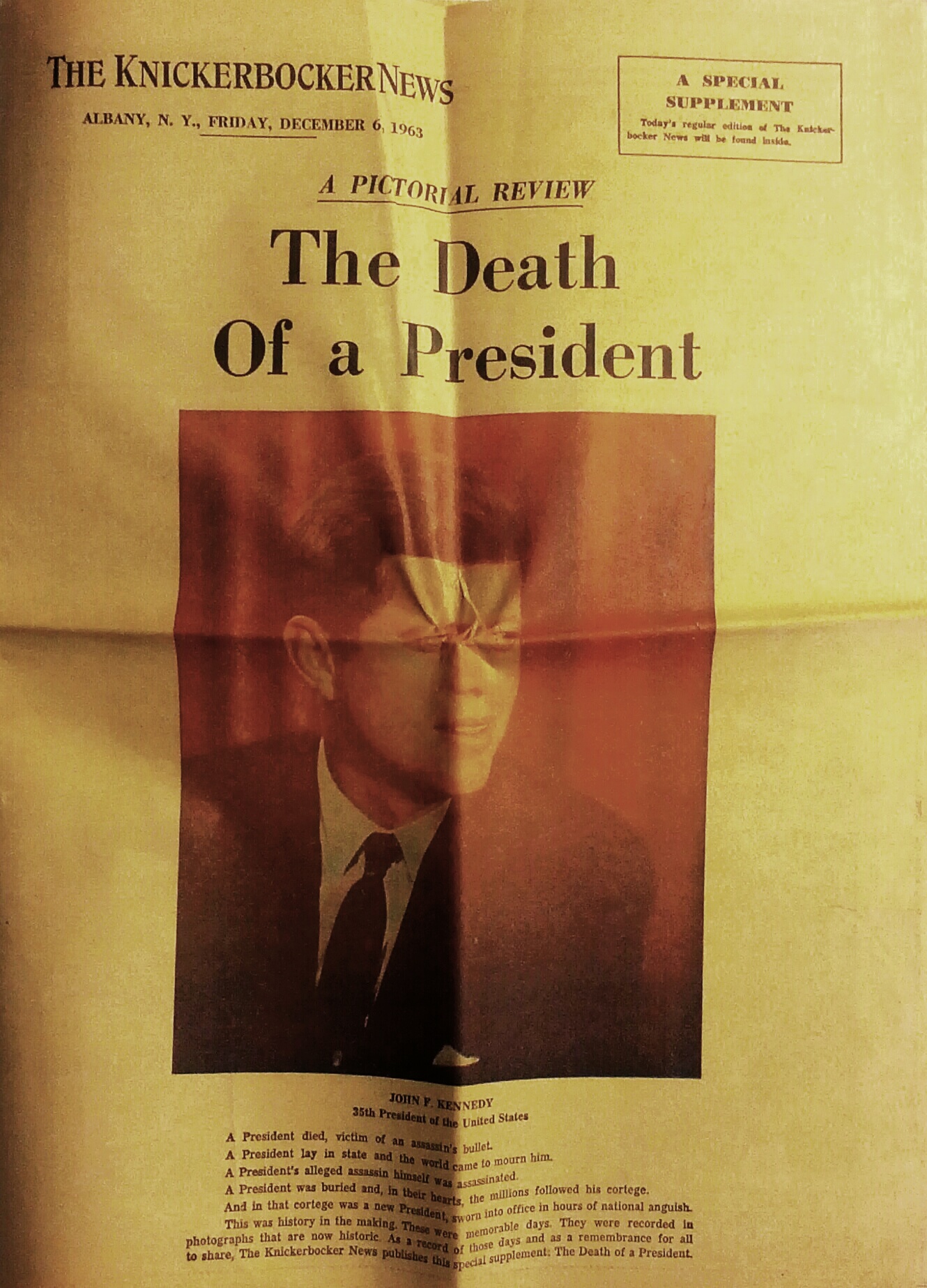 Dec 6, 1963, THE KNICKERBOCKER NEWSPAPER , Death Of A President ,, J.F KENNEDY, Asssasination