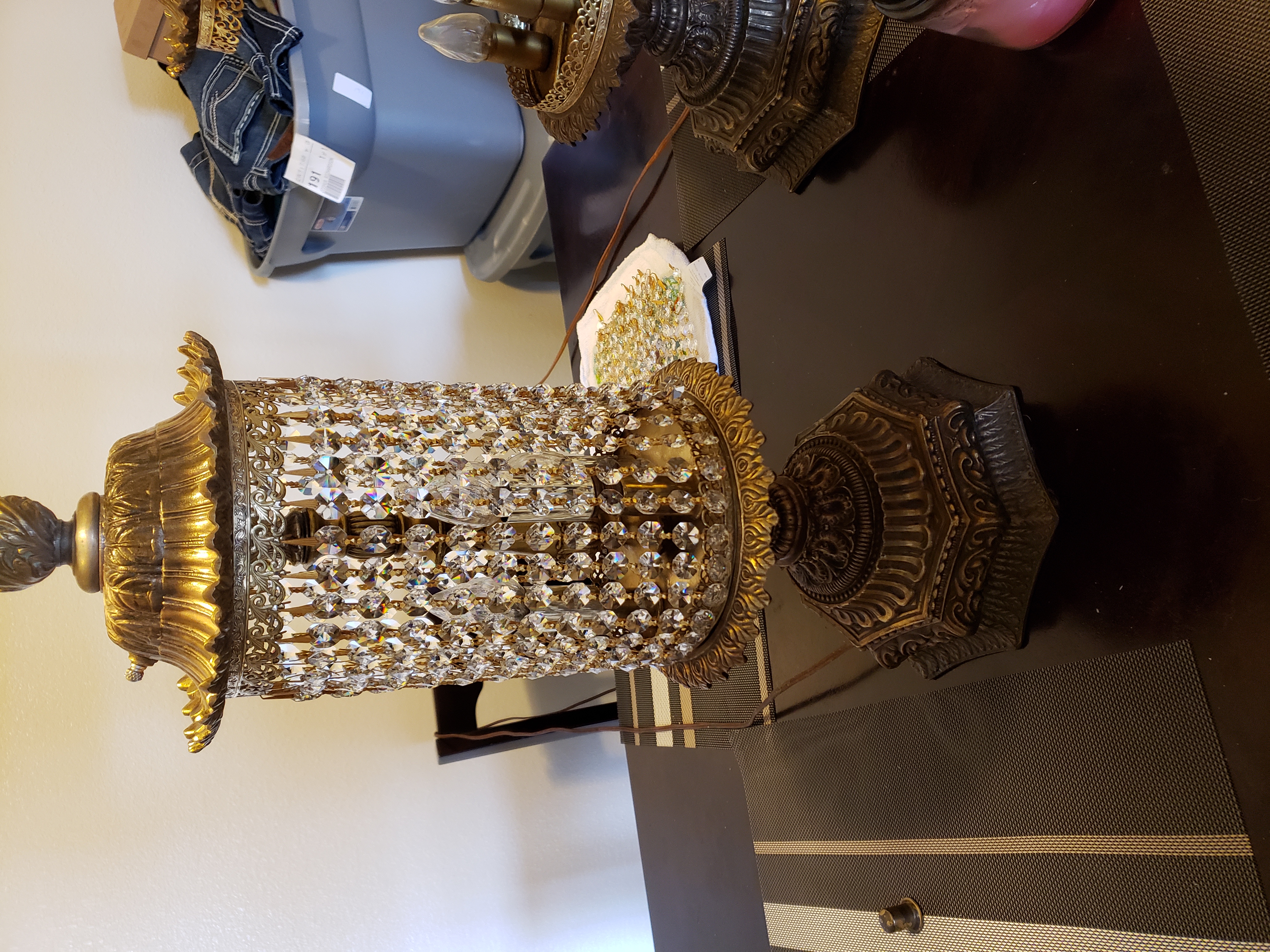 I have two 44" tall brass and crystal lamps that I just inherited from my grandpa. I don't know much about them nor the value. Both complete and working condition.