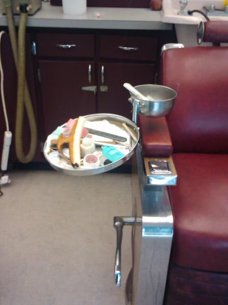 Original Owner retiring. Bought in 1967 and professionally refurnished the seat and armrests 10 years ago. Hydraulic tilt. Includes neck rest.