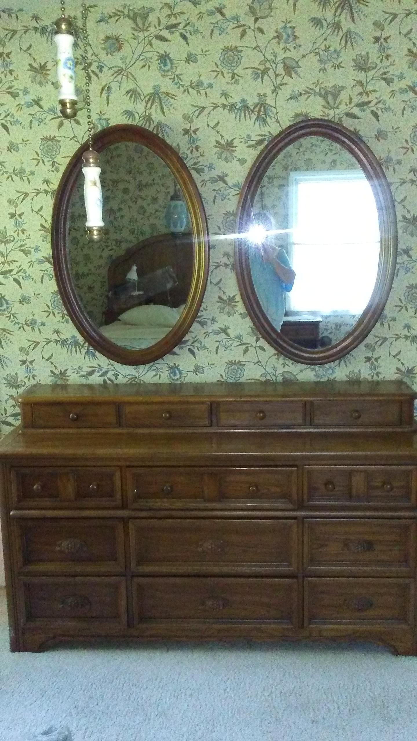 my mother baught them after they purchased there home, Dixie furniture company, Bedroom suit, Dresser, chest of drawers, headboard, nightstand.