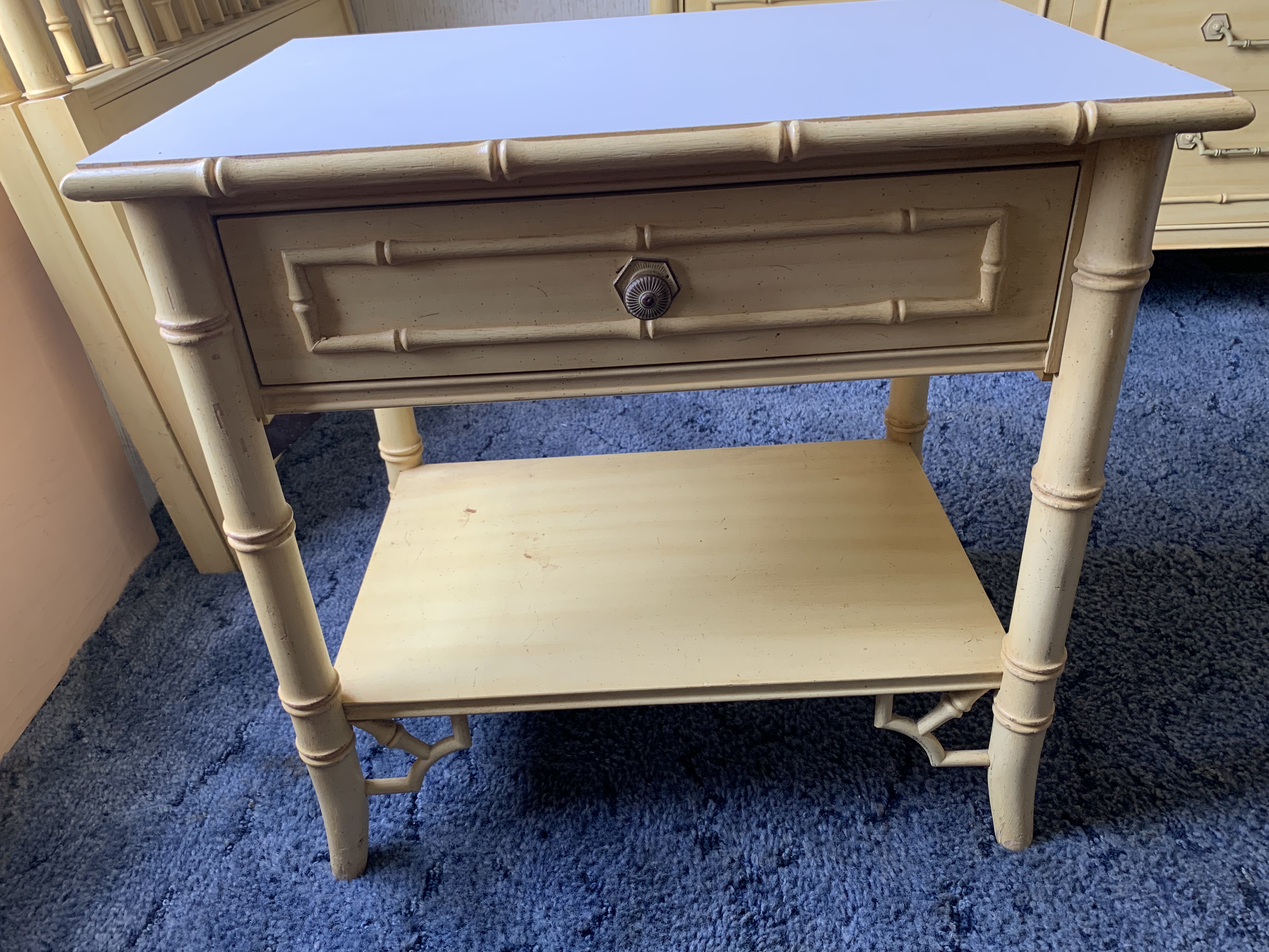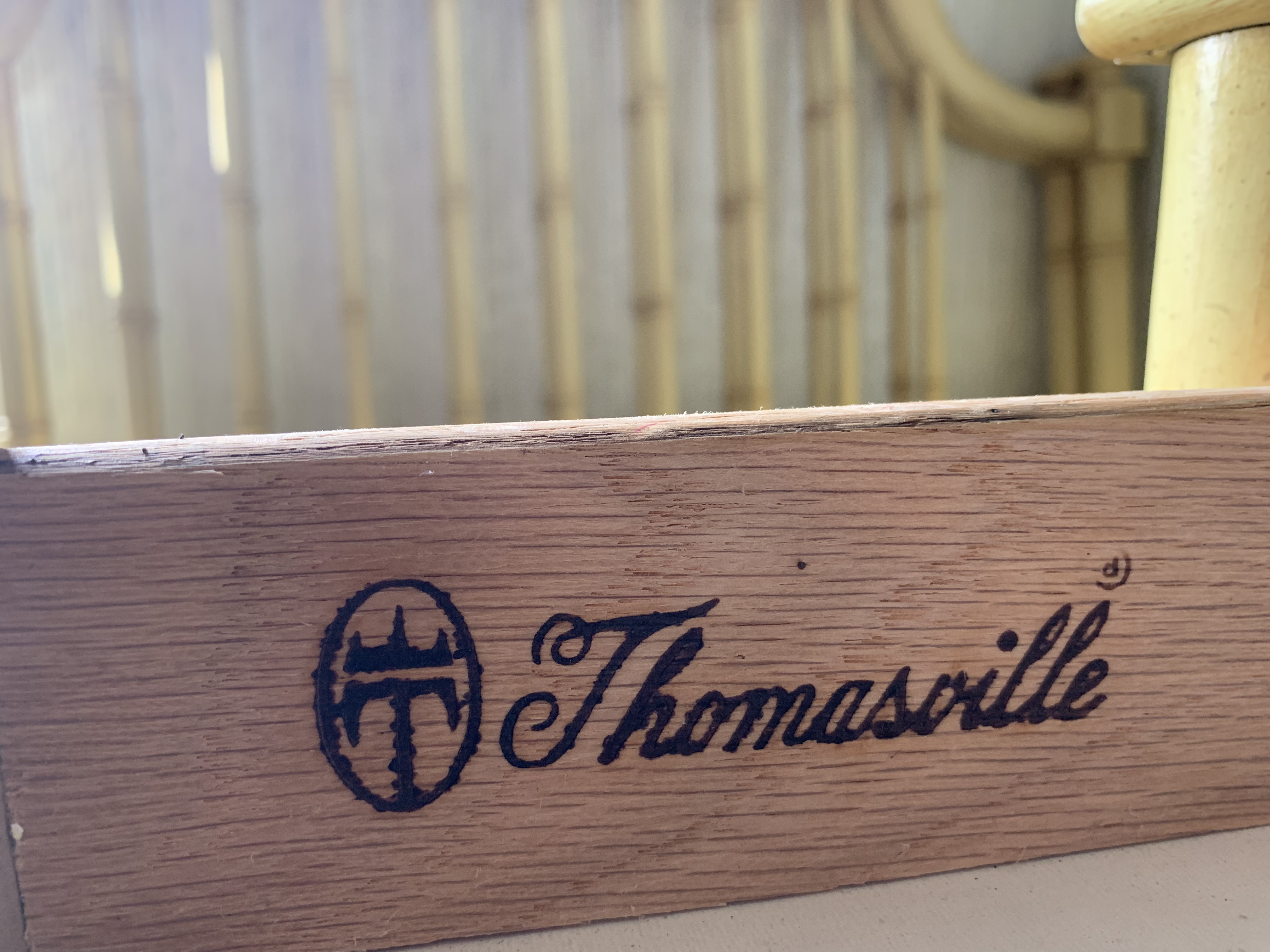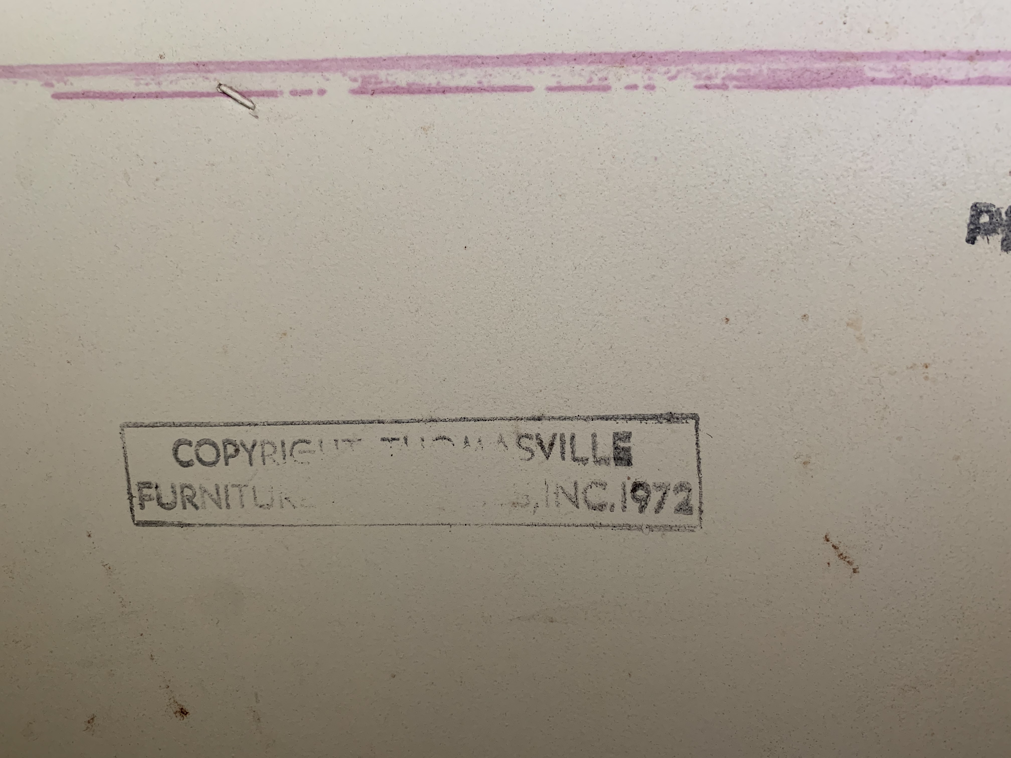 I have a Beautifully maintained Thomasville Twin bedroom set! It includes the Headboards, end table, Dresser, as well as the Mirror! I believe it to be around the 1970s. It is in good condition given the age of the pieces!