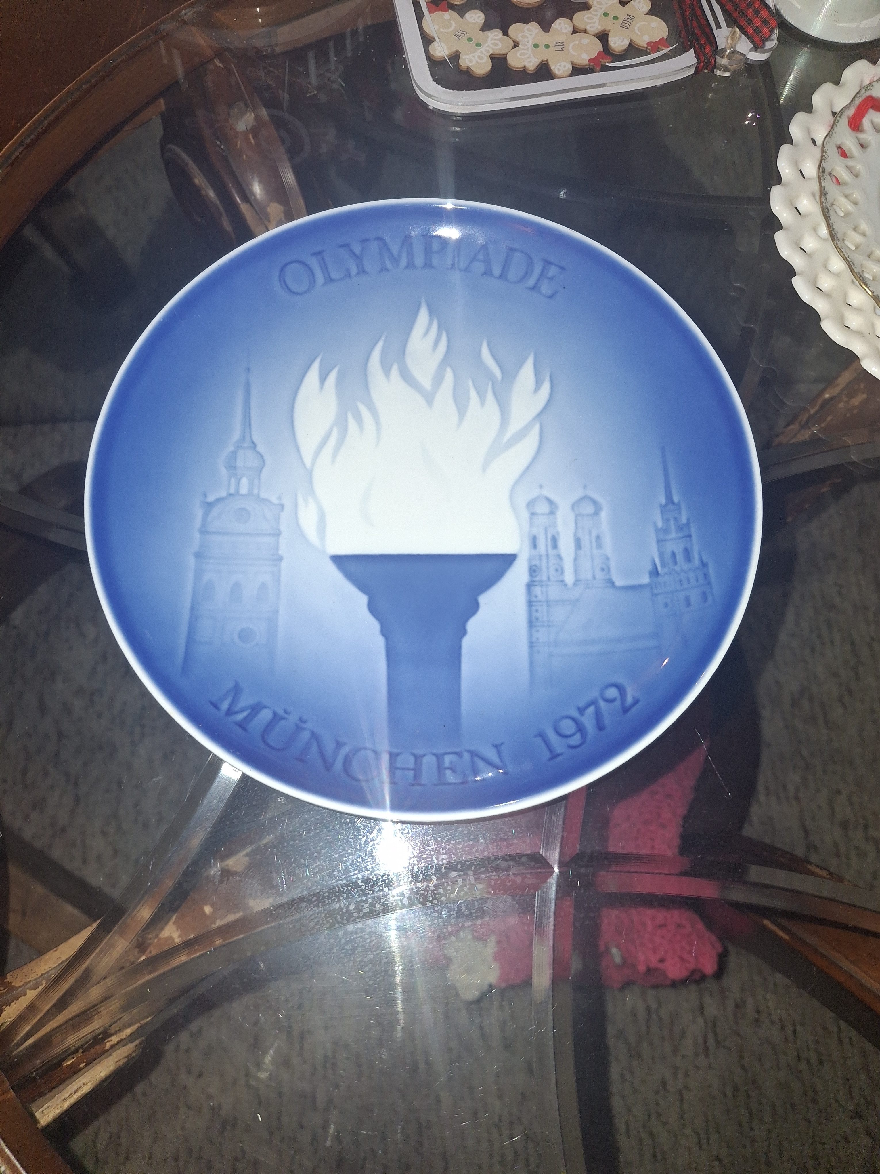 History 1972 Munich Olympics Collector Plate by B&G copenhagen, and Trace the 1972 Olympic Games held in munich, germany. Created by the Danish porcelain manufacturer Bing and Grondahl,