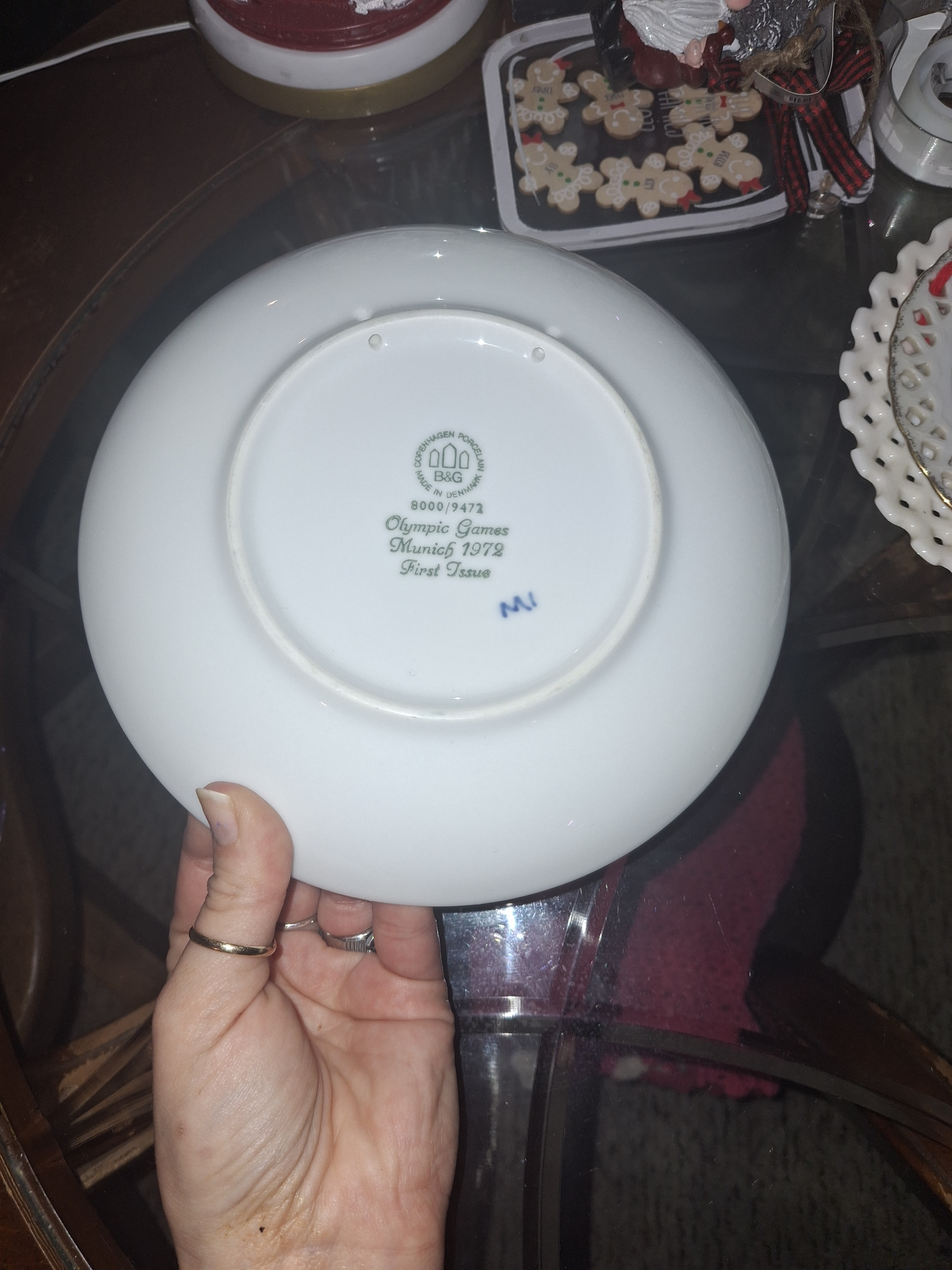 Distinguishing marks 1972 Munich Olympics collector's plate by Bing & Grøndahl (B&G Copenhagen):