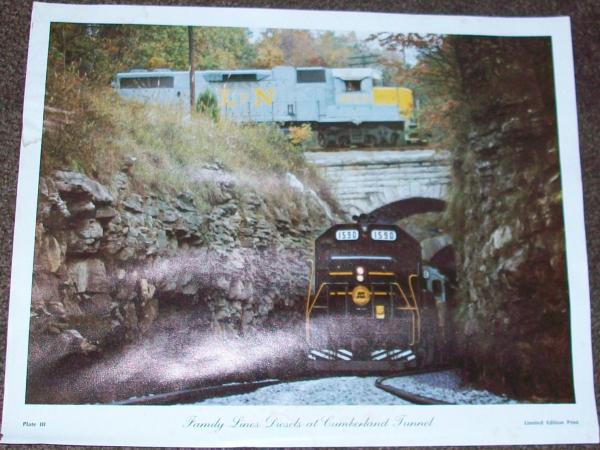 1977 Limited Edition prints of 4 trains:"The General Steams Again","Coal Through The Narrows", Double Header!", and"Family Lines Diesels at Cumberland Tunnel"