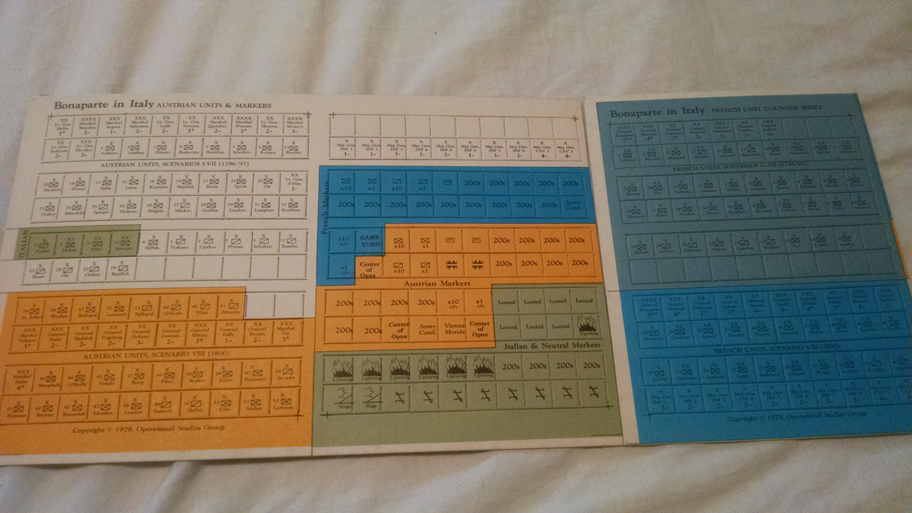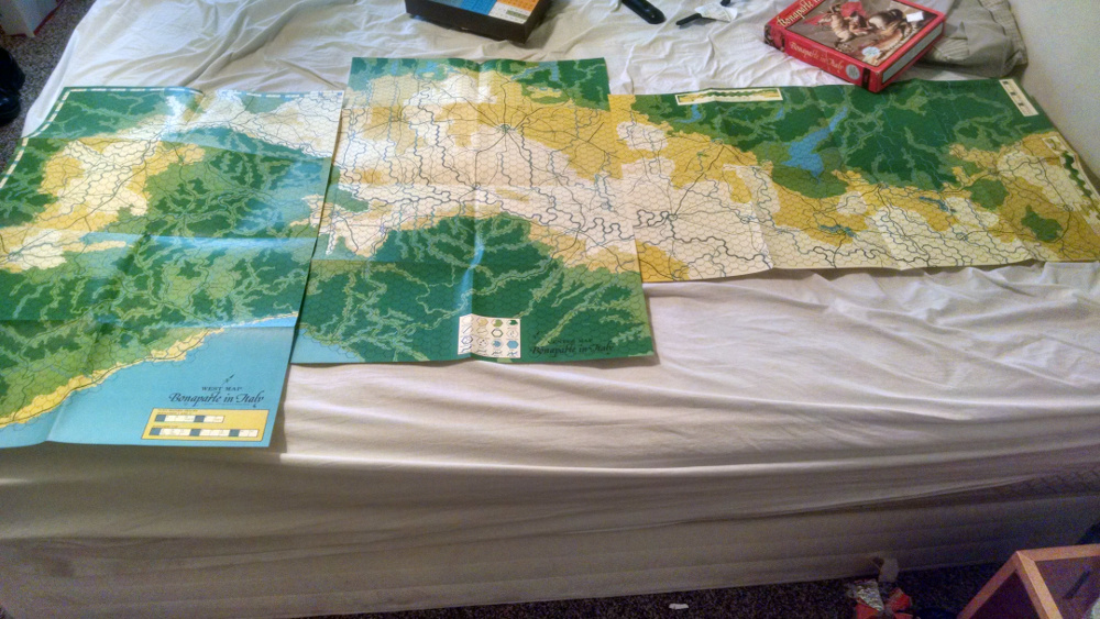 I was shocked when I opened it and found that it had never been played before, the game pieces are punch out cardboard pieces that are still in their frames. The game board is a three piece topographic map of Italy and is still in perfect condition.