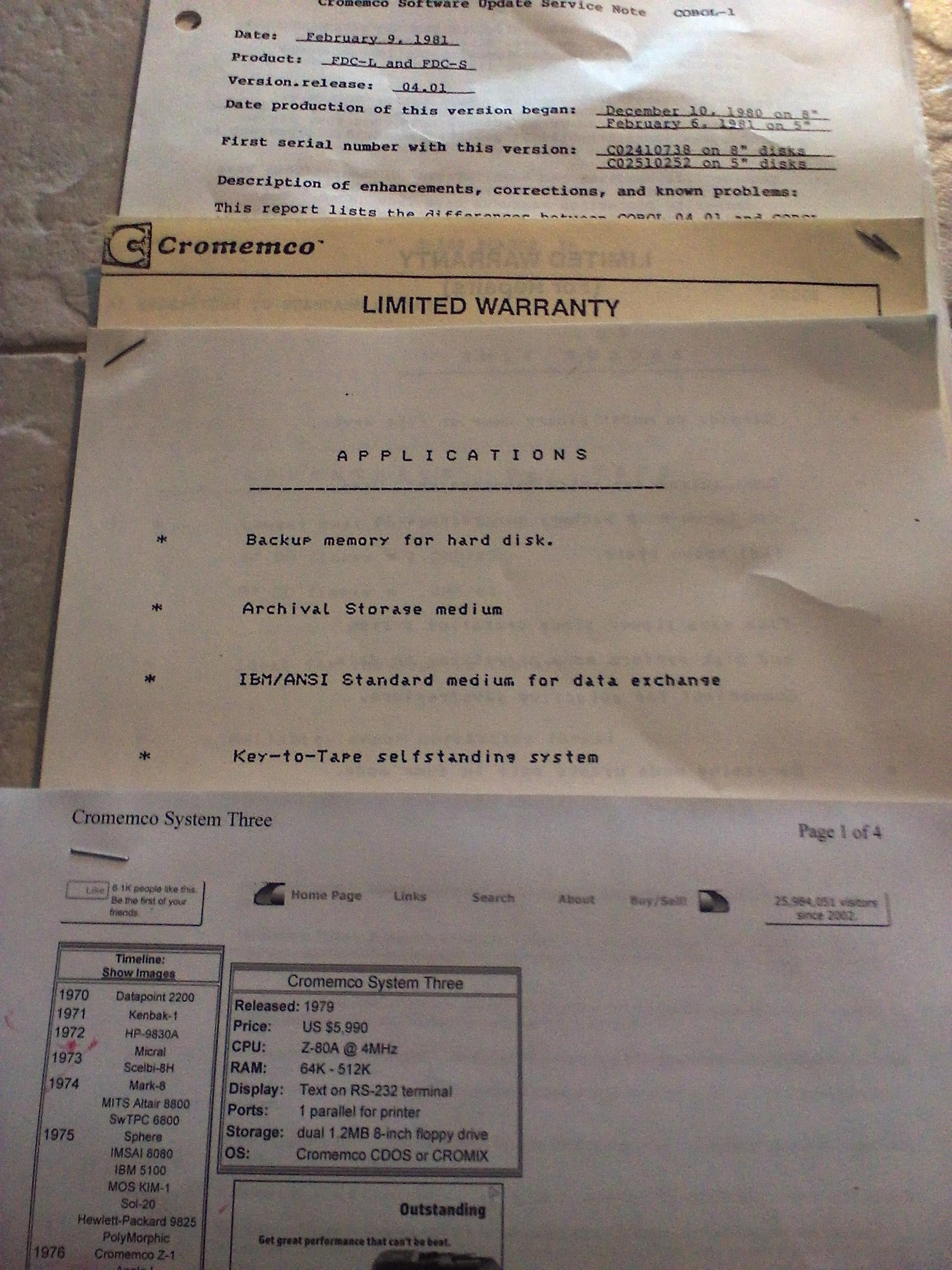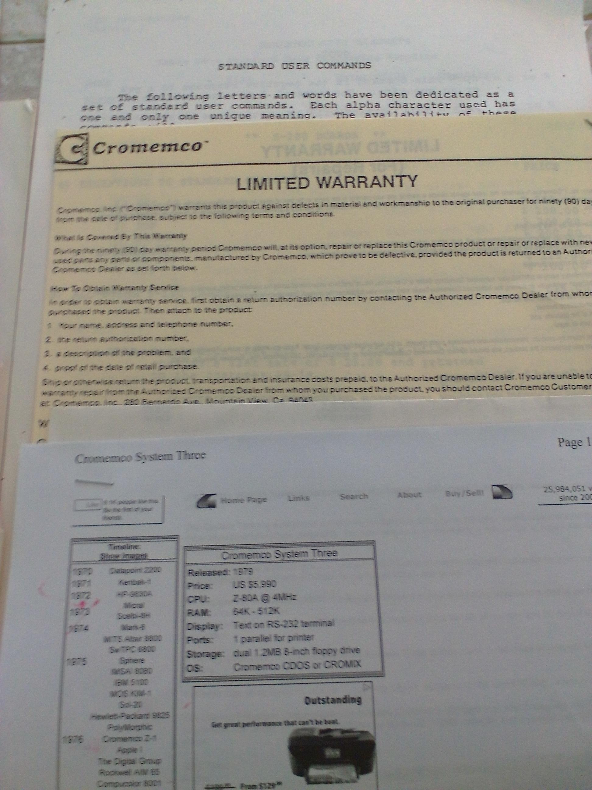 The Cromemco (named for CROthers MEMorial Hall - the Stanford residence where the founders lived) System Three is a microcomputer with the features you want and need to do professional work in almost any field; engineering, science, business/accounting, word processing, data-based management, education, medicine, and others.