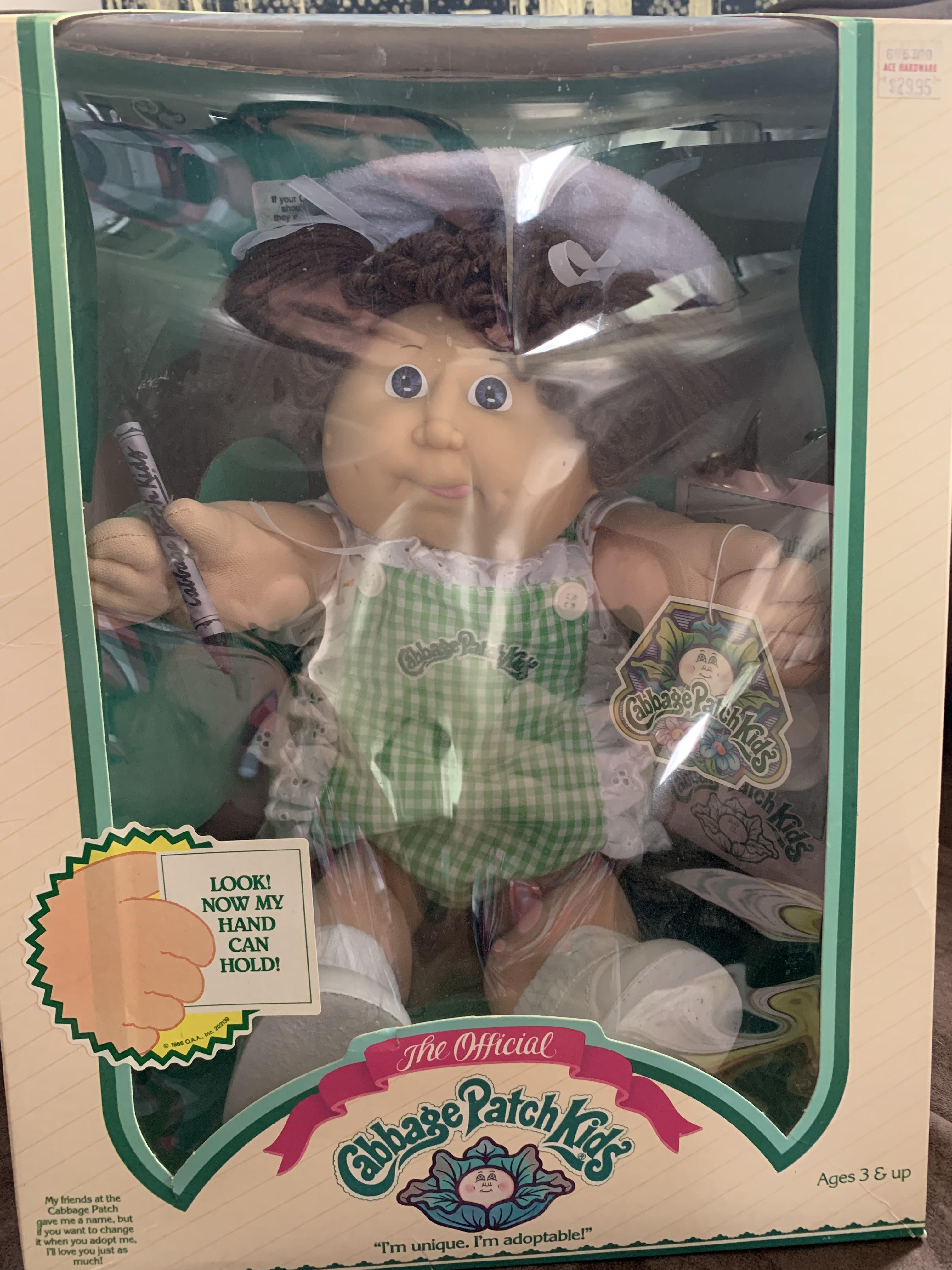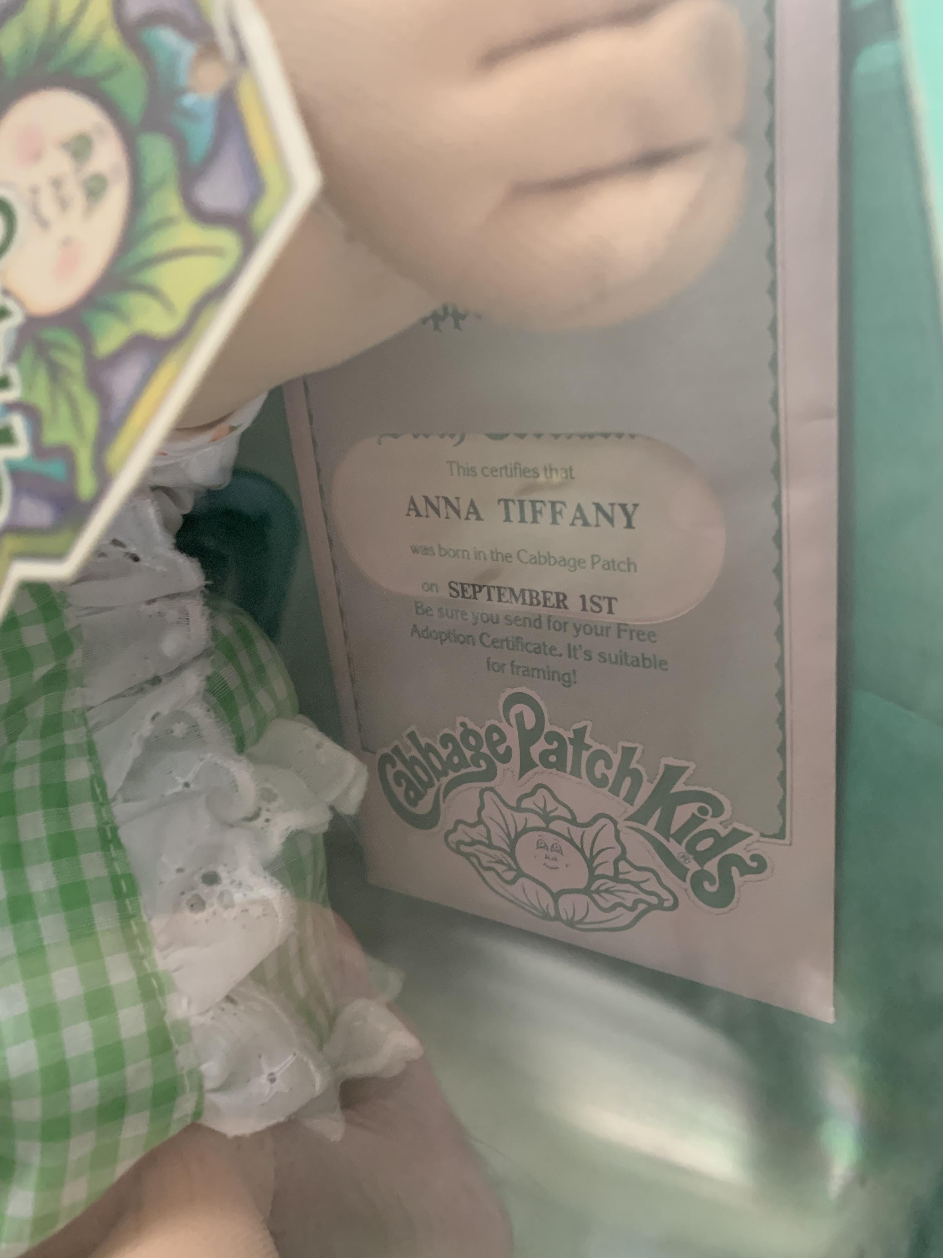 1983 the Official Anna Tiffany Cabbage Patch Kid. Still in the box and has all accessories included.