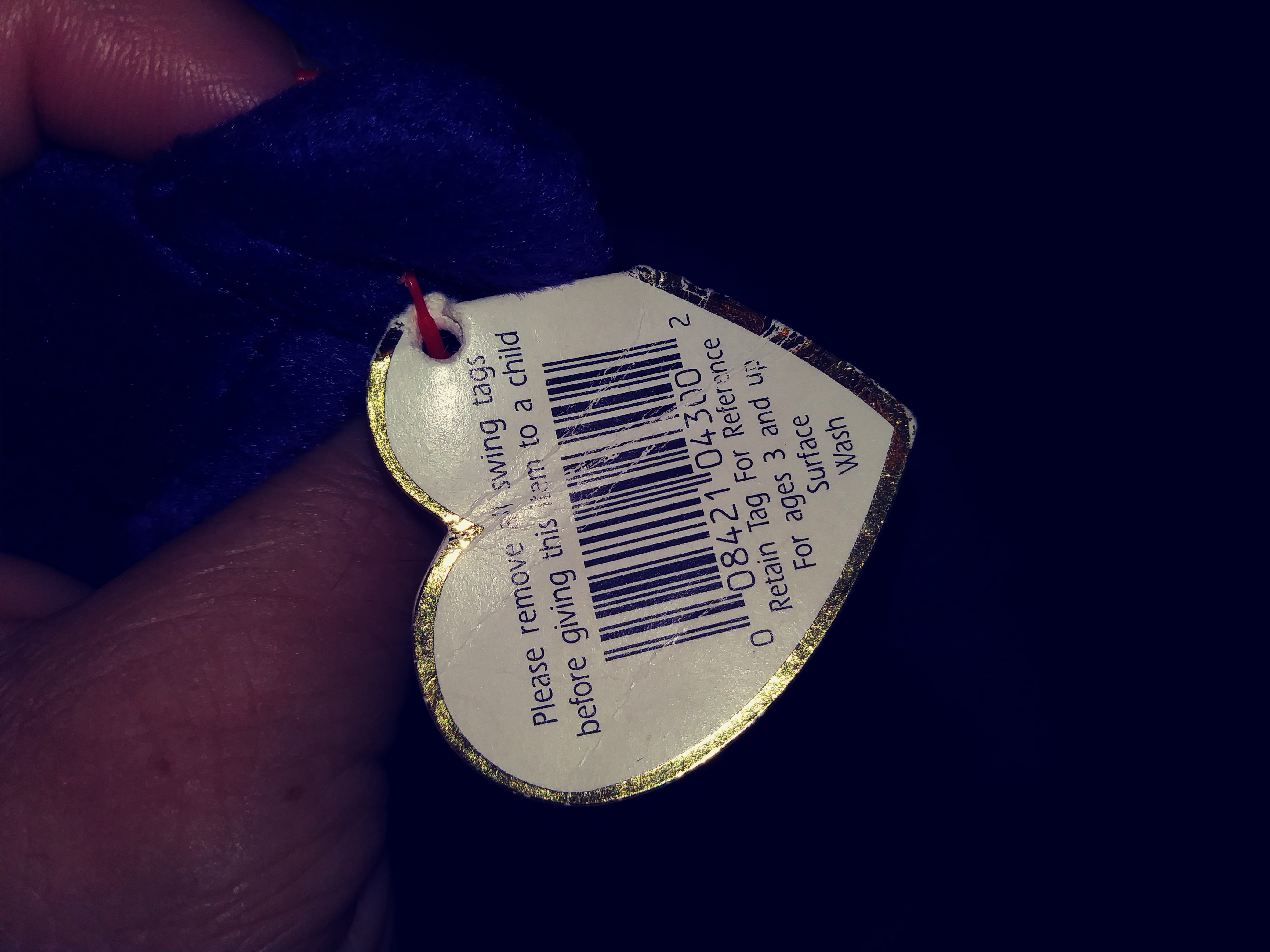Made in China • Space swing tag • P.E. with # inside tush tag • selling range $1-$10 • Value $5