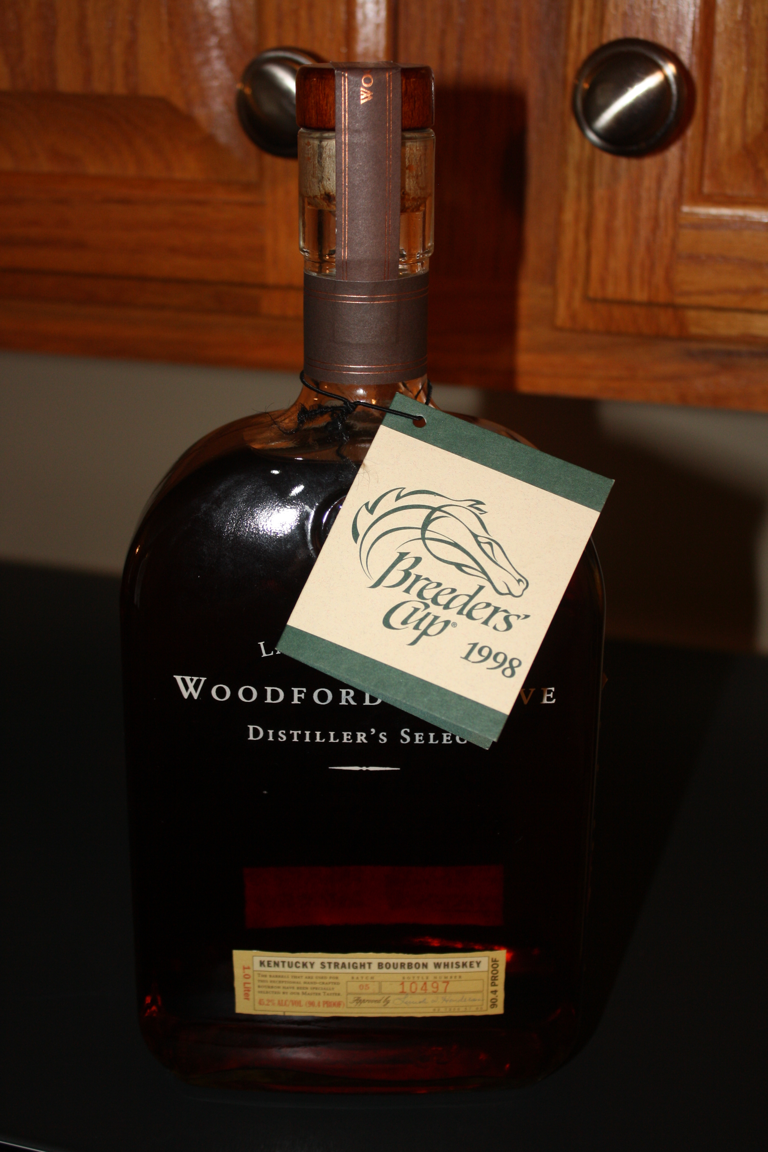 1998 bottle of Woodford reserve, 1 of 2400. Only sold and distrubuted in KY. Never opened or exposed to sun light. Seal is intact and hang tag is perfect.