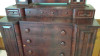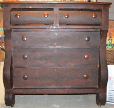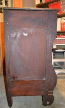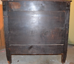 Dovetail construction, square headed nails, 2 drawer bottoms have been replaced. Original wooden casters and lock hardware