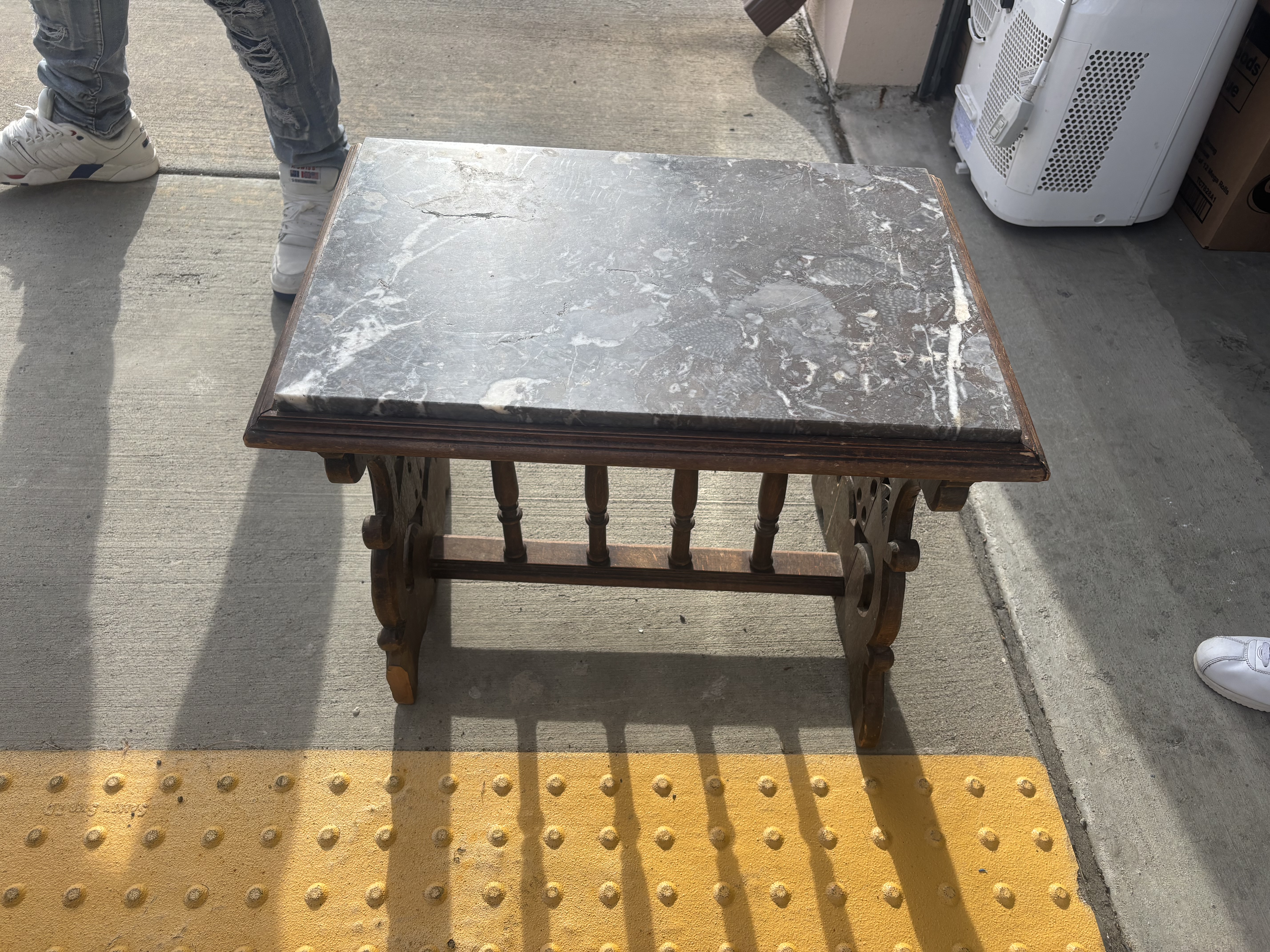19th Century Carved Marble Top Side Table. Dating to c. Unlock the full appraisal for complete details.