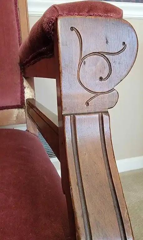 Antique Eastlake sofa/settee Velvet upholstery, front casters, size: H-38" x W-51" x 22".
