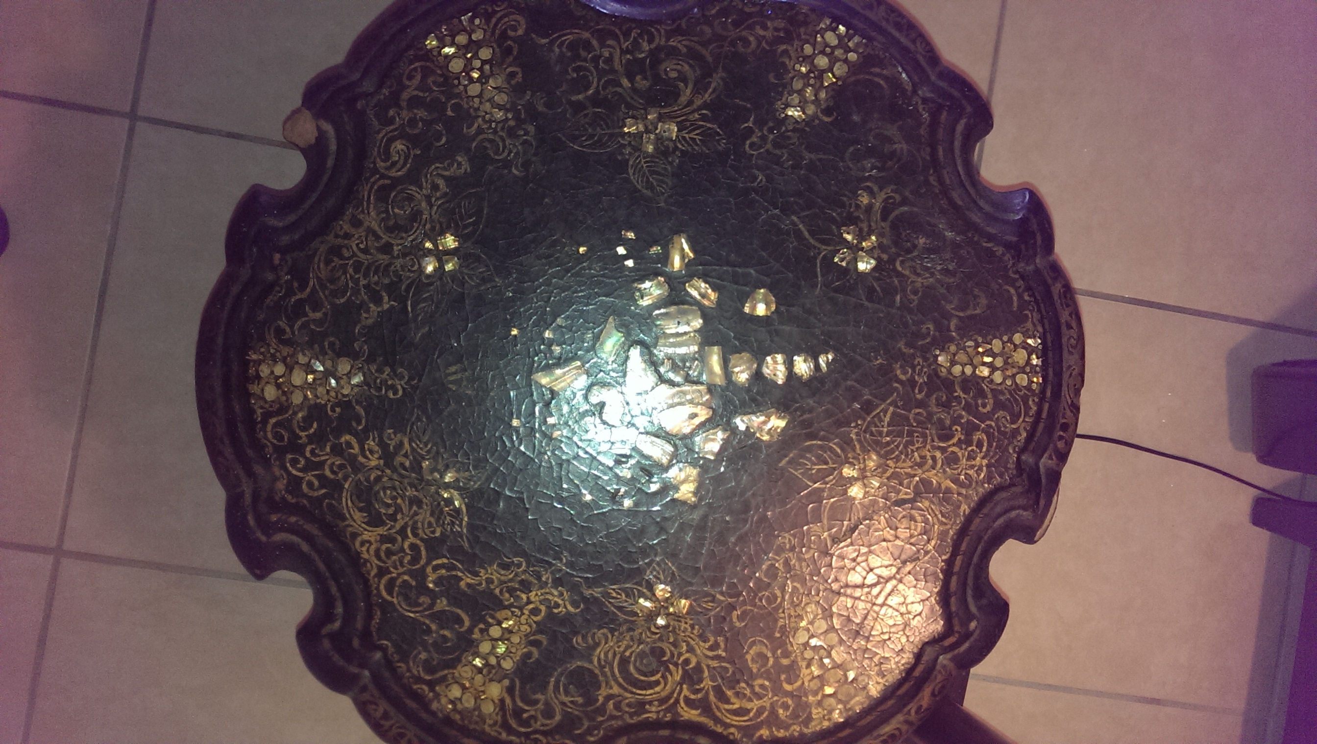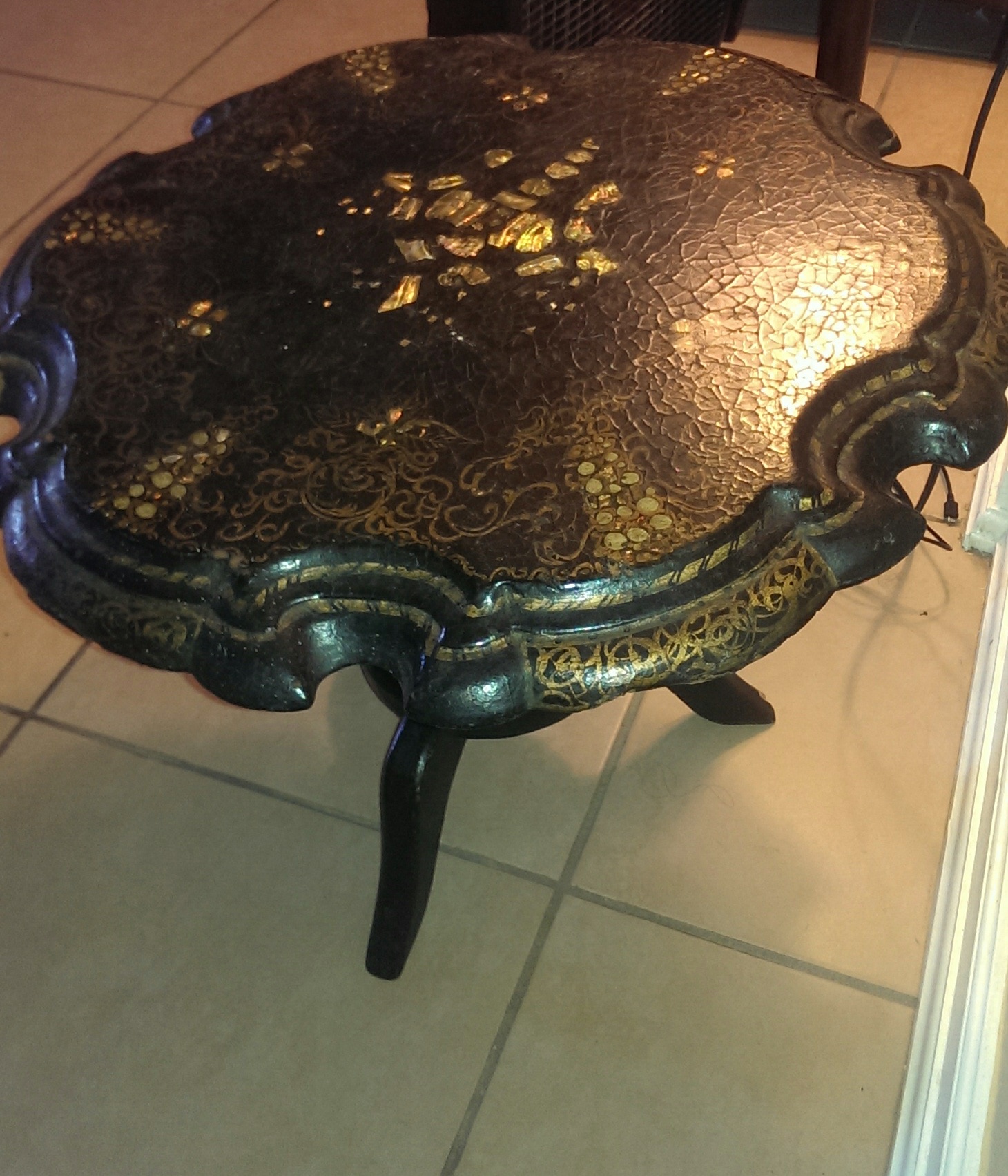 I have a mid 1800s black Victorian paper mache table with mother of pearl inlay. It is beautiful and is in excellent condition considering it is almost 200 years old.