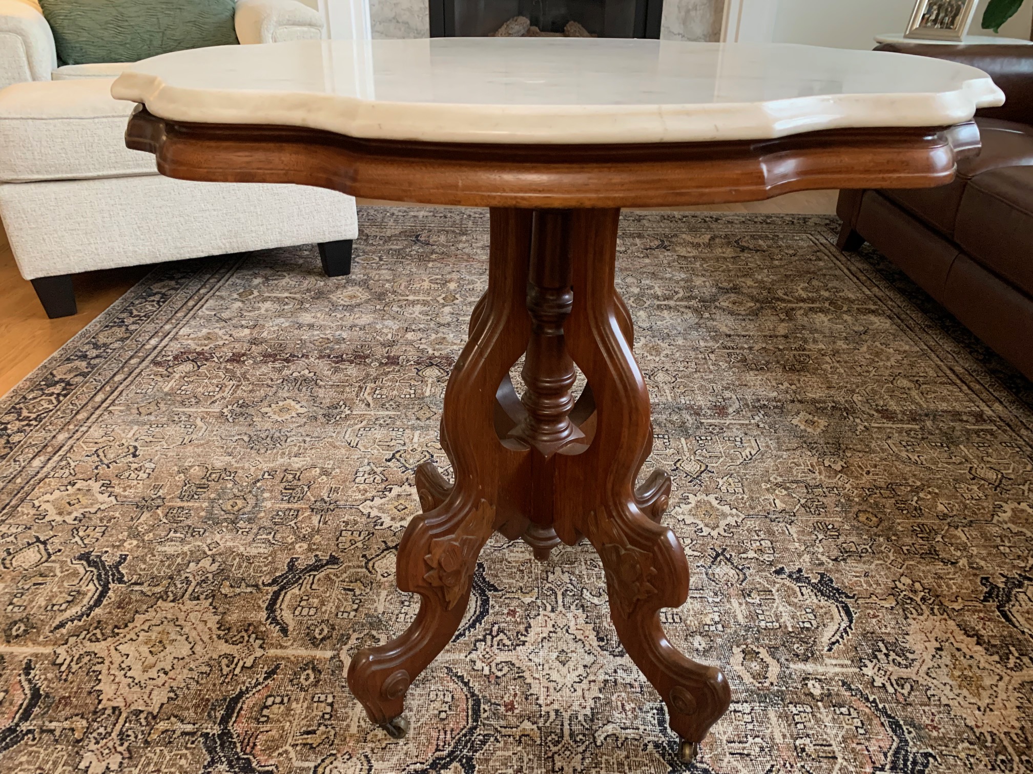 AI Appraisal: 19th Century Victorian Walnut Table with Marble...