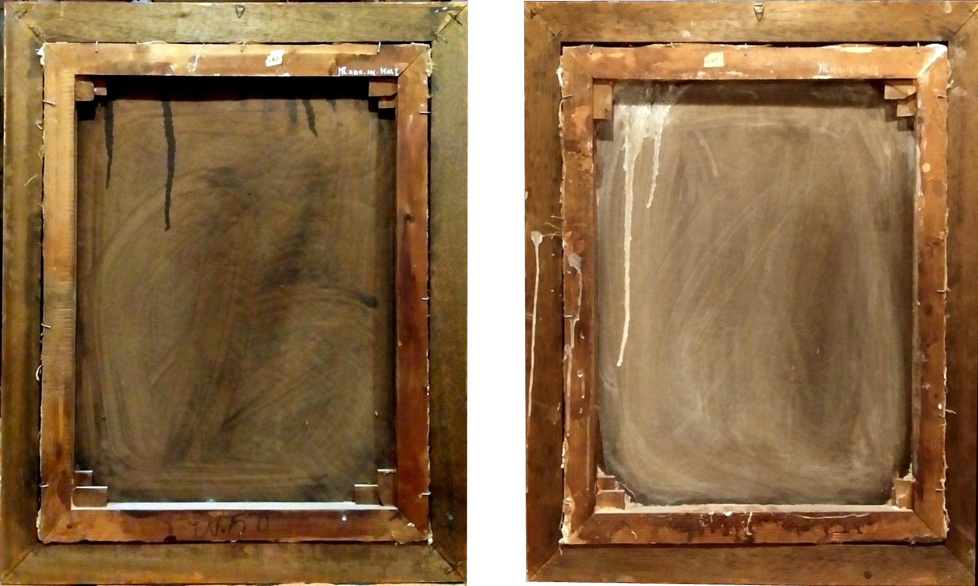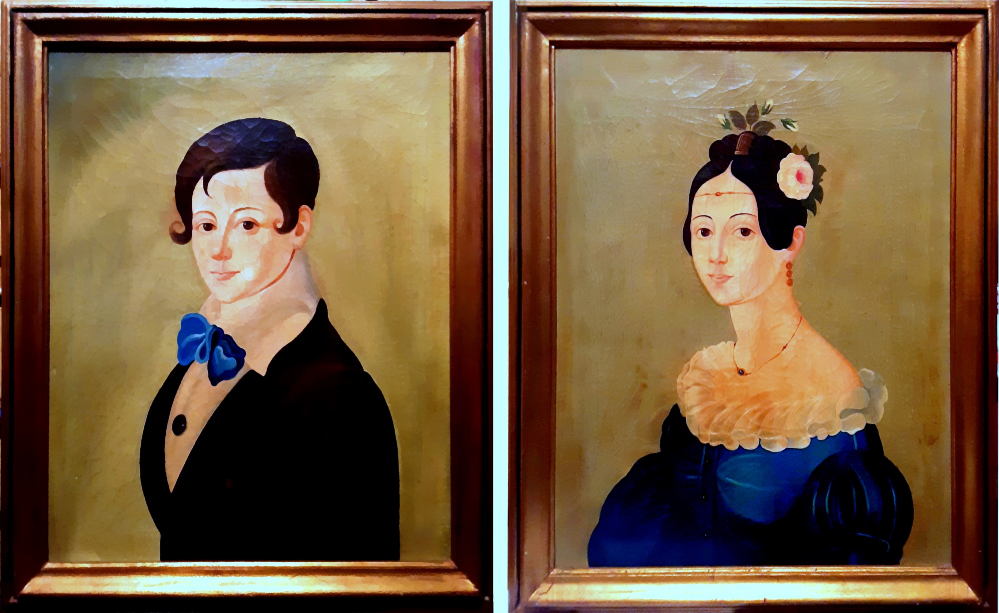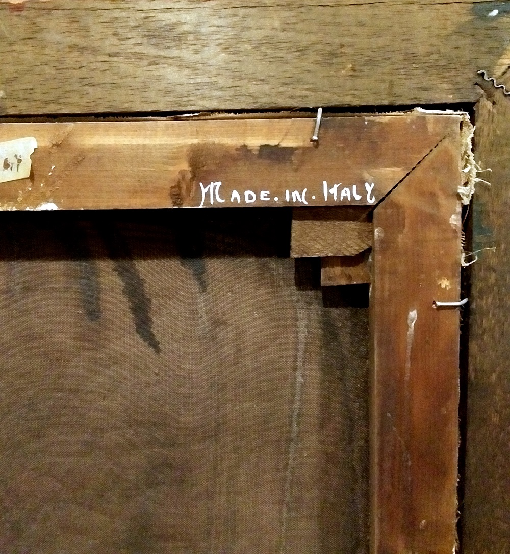 I purchased these two oil paintings at a yard sale. They look to me to be 19thc American School Folk art, however the markings on the back of the frames say "Made in Italy".. They are unsigned which I know is normal for paintings out of that time. Any info anyone could give would be greatly appreciated.
