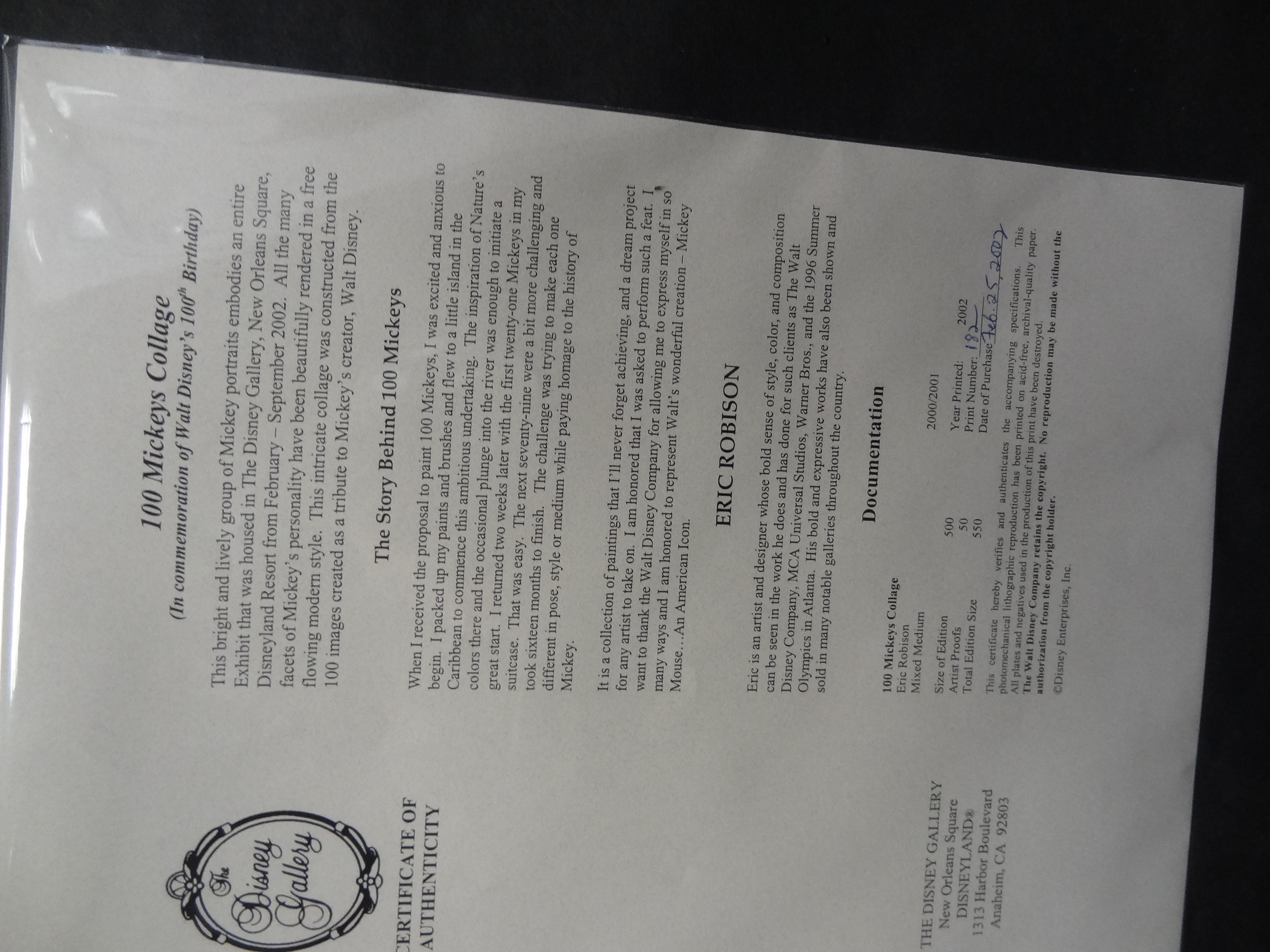 Framed 1oo Mickeys Collage by Eric Robison 2000-2001 Certificate of Authenticity Limited edition