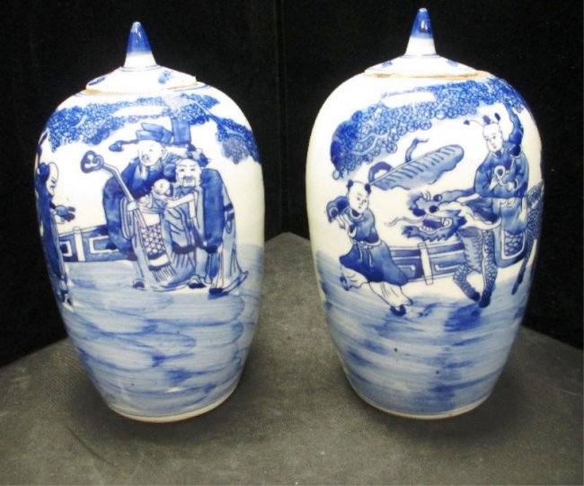 Both of these lidded Vases depict scenes from the Imperial Household.