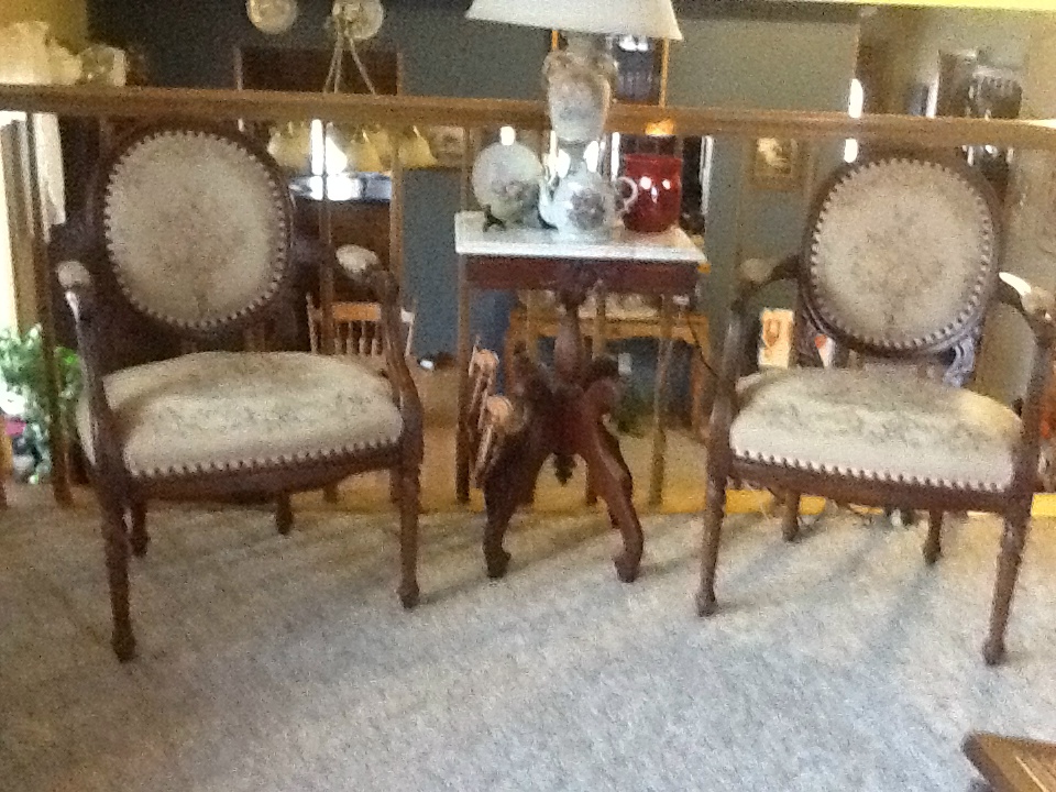 2 Antique Eloquence Louis Floral Upholstered Carver Chairs
