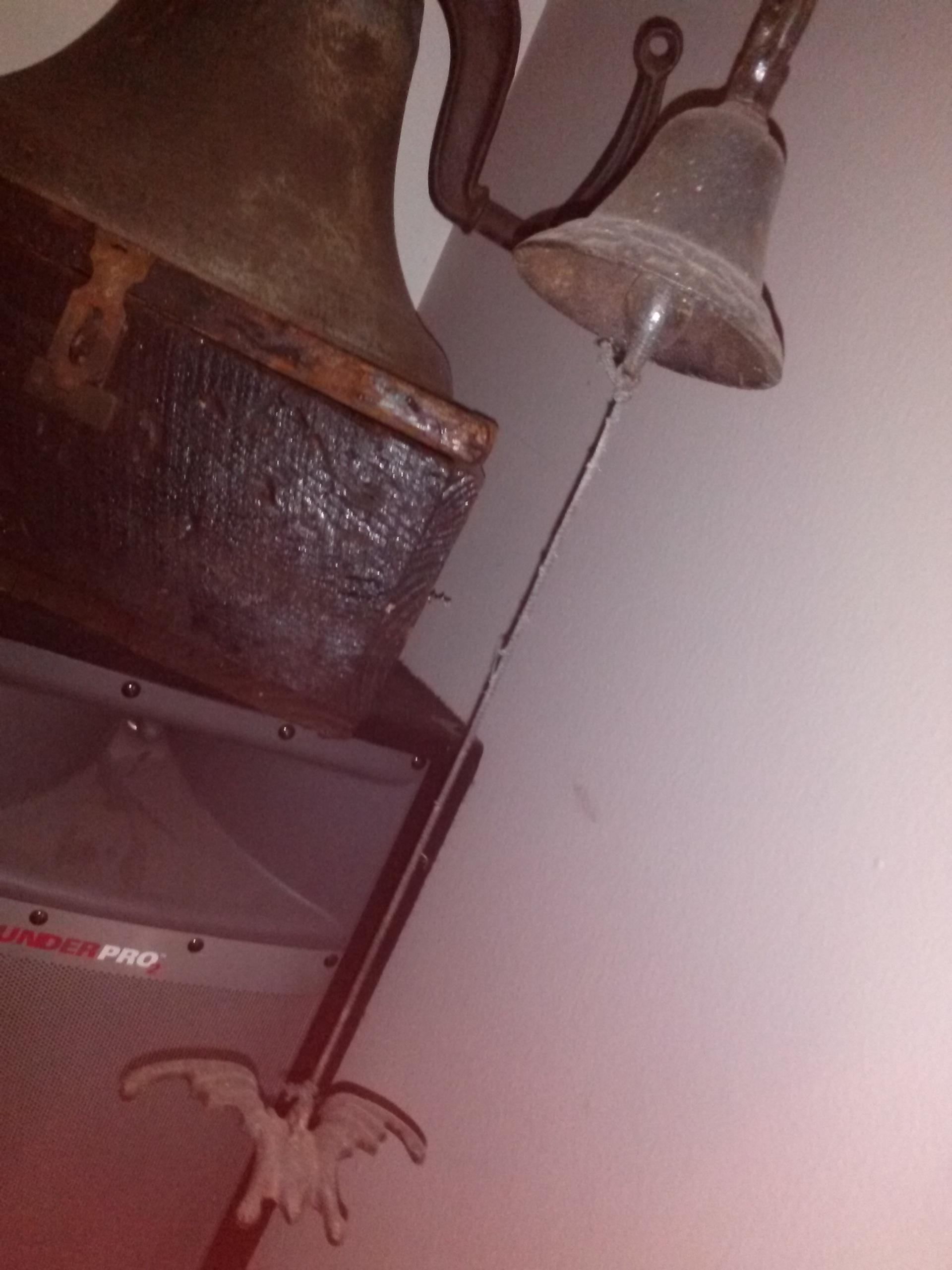2 bells on big heavy and a mini. With an iron bat hanging from it. Was told big bell came from abandon church In north Michigan. But any info would love to know thanks Keith d