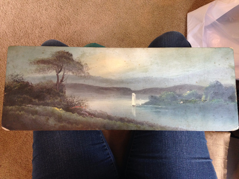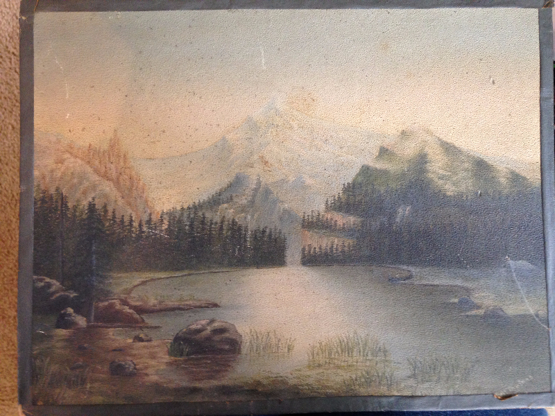 One says by EM Thomas, which is 10.5x8.5 with a mountain and