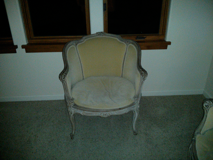 Carved wood frame, subtle white wash finish, Louis XV style, cane seat