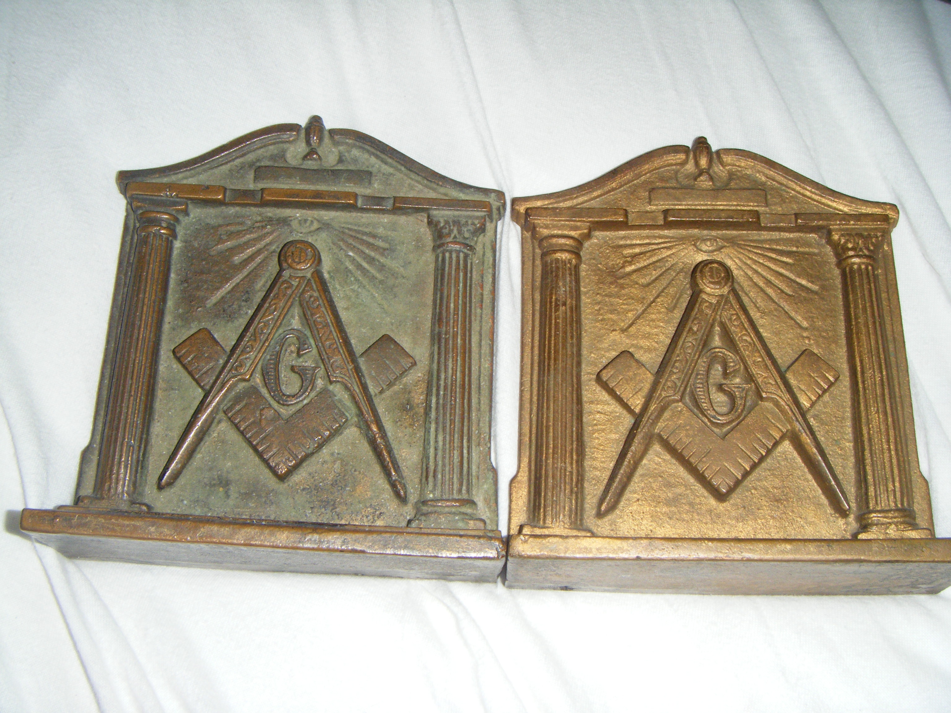 Re: 2 bronze free masonic book ends