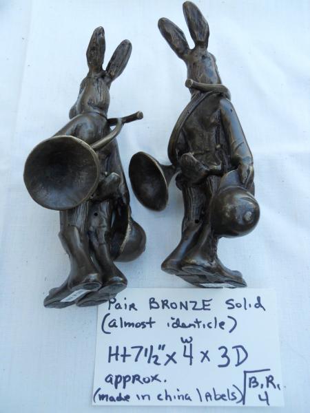 bronze solid ecept fo 2 holes on the reverse of each figurine...unknown purpose