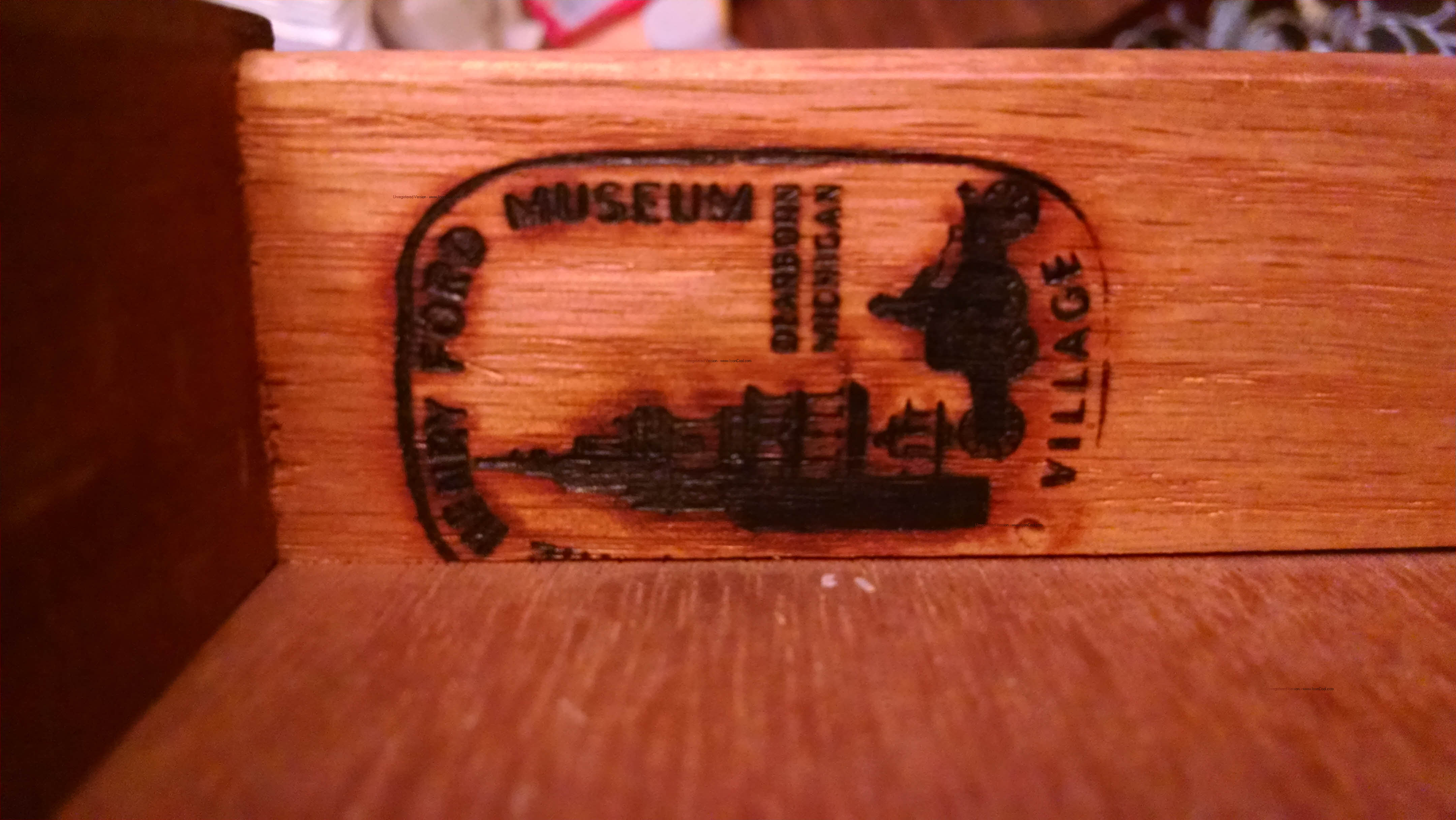 It has a Henry Ford Museum brand on the inside of one of the drawers.  I was not able to find any other marks on it.